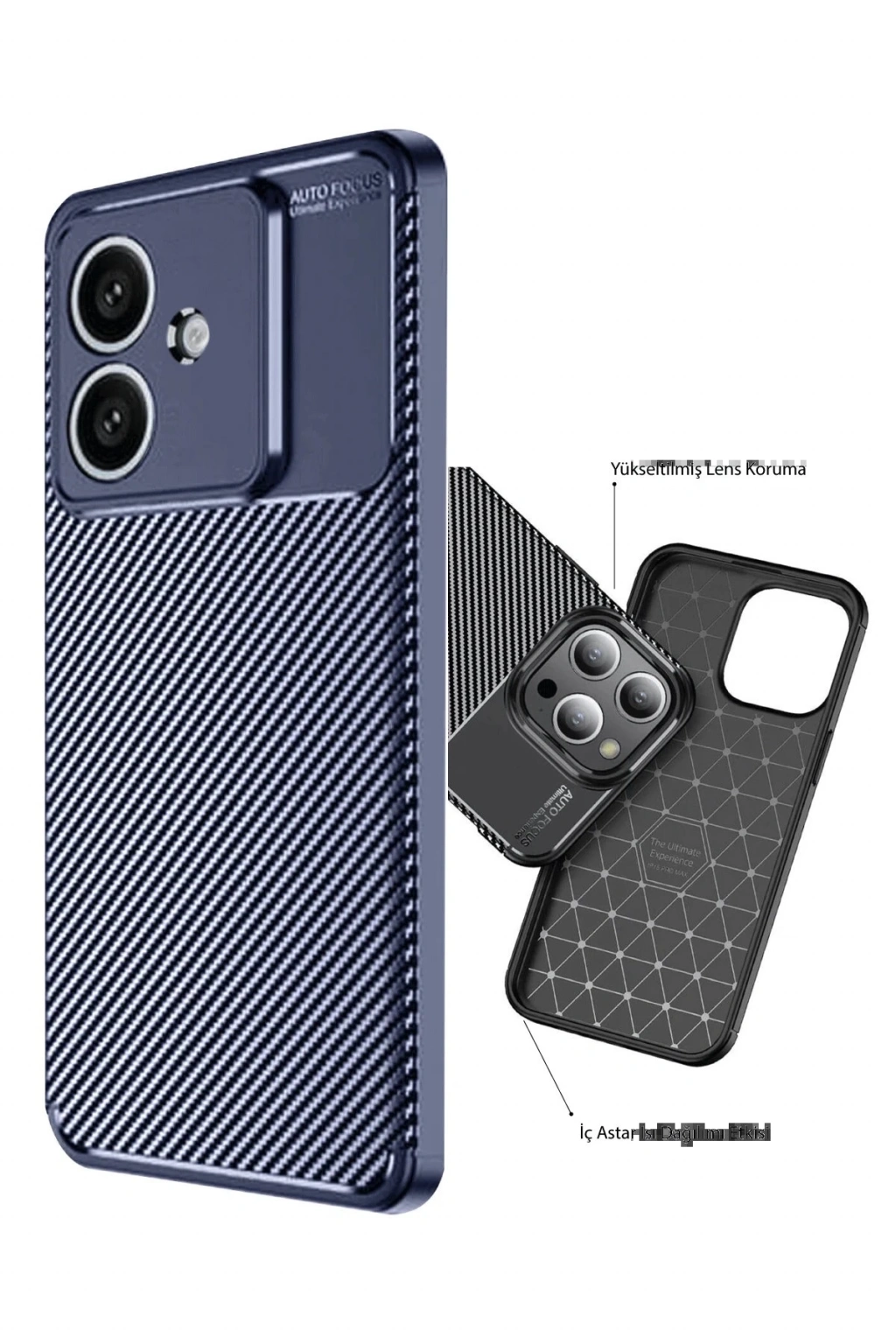 Oppo A3 Kılıf Auto Focus Karbon Kapak - Lacivert
