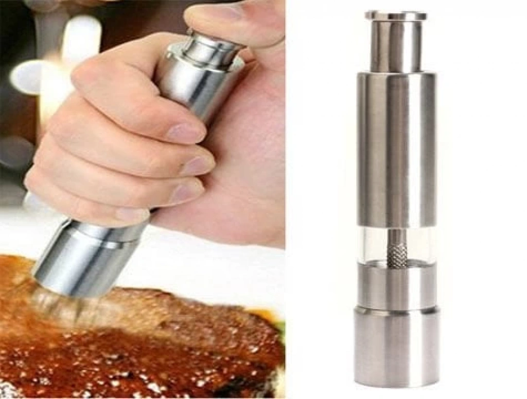 Karabiber, tuz ve baharatlarınızı kolaylıkla taze taze ve otomatik bir şekilde çekebilmeniz için tasarlanan kullanışlı bir ürün Paslanmaz Çelik, Basmalı Baharat Değirmeni!