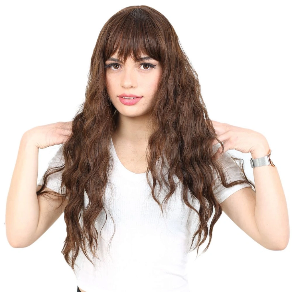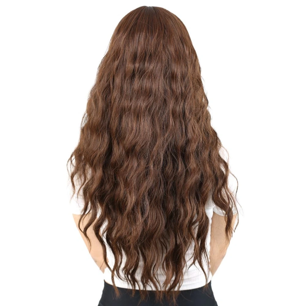 Dalgalı Perçemli Uzun Fiber Sentetik Peruk - Koyu Kumral
