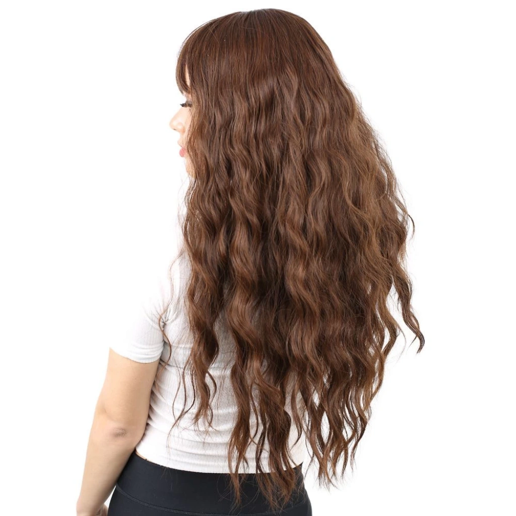 Perçemli Uzun Su Dalgası Fiber Sentetik Peruk- Kahve Karamel