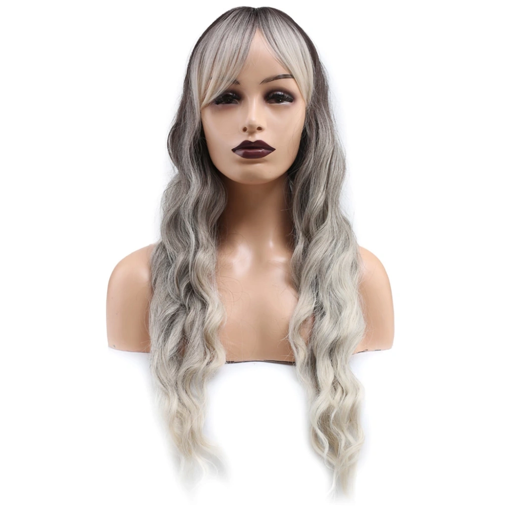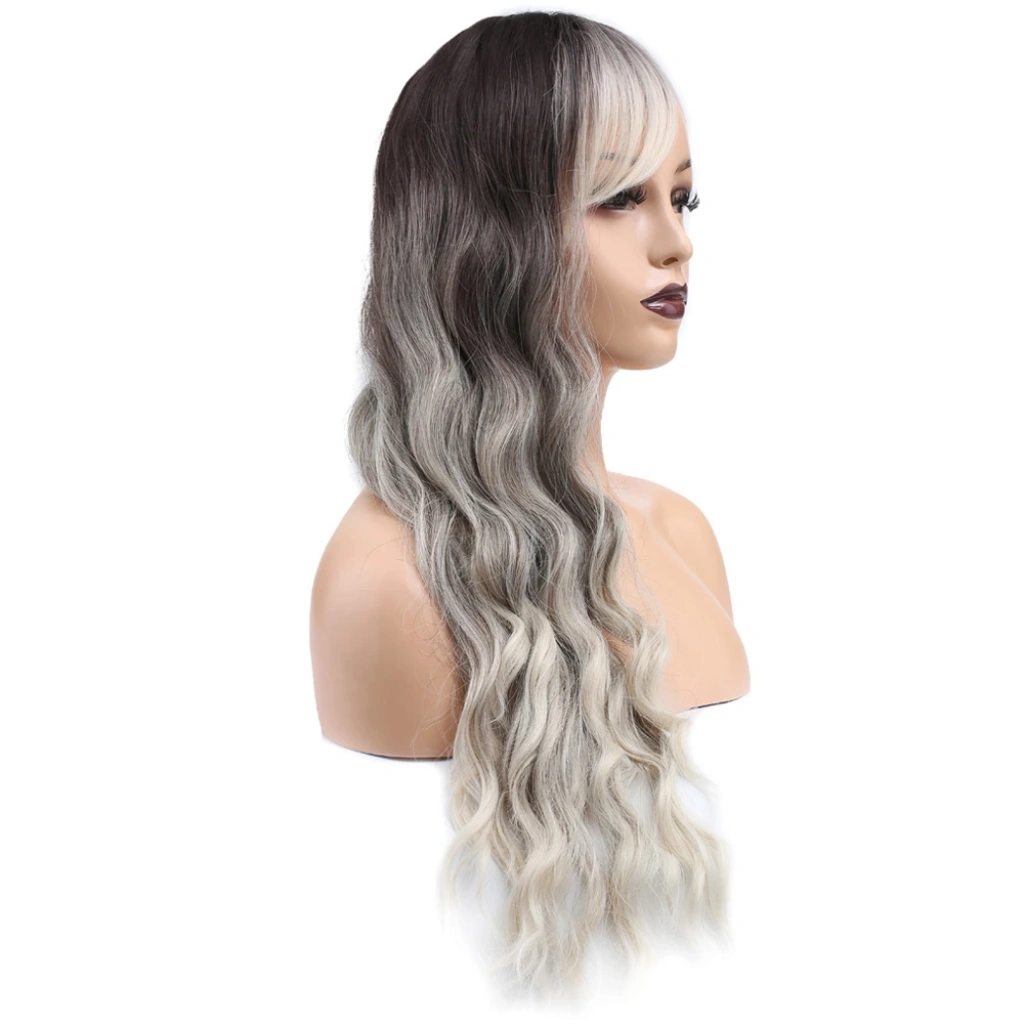 Dalgalı Perçemli Uzun Fiber Sentetik Peruk - Siyah / Gri Ombreli
