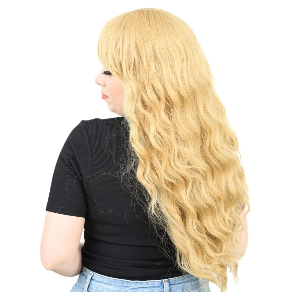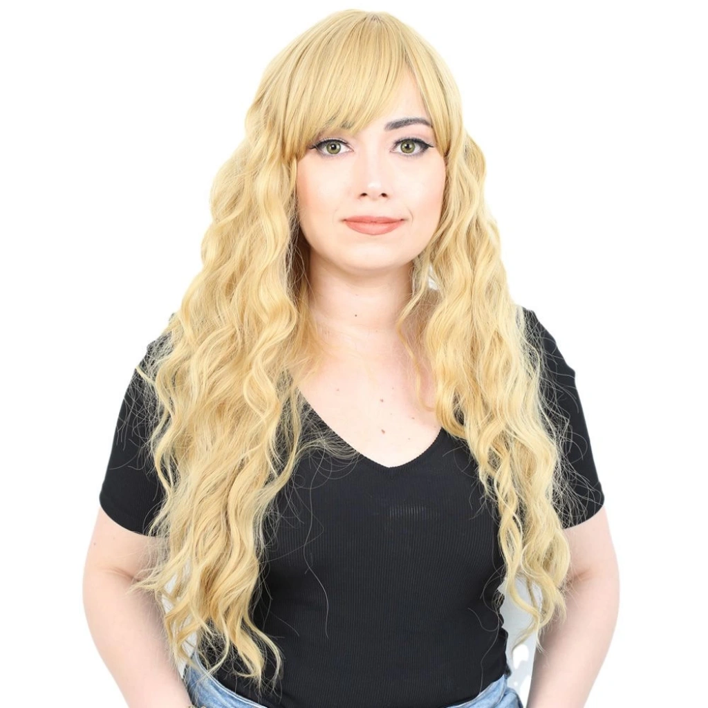 Perçemli Uzun Su Dalgası Fiber Sentetik Peruk - Sarı