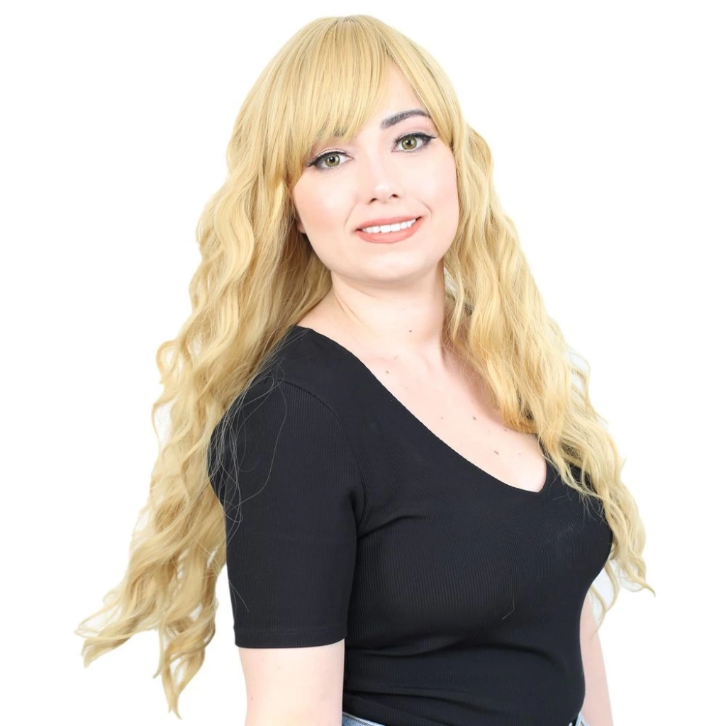Dalgalı Perçemli Fiber Sentetik Orta Boy Peruk - Balköpüğü Platin Röfleli