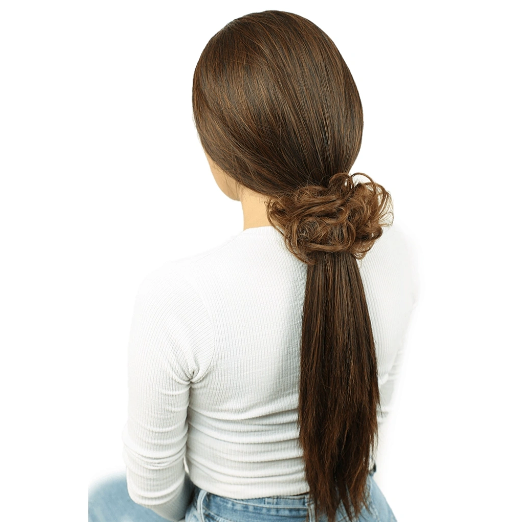 Saçlı Lastikli Topuz Toka - Koyu Kahve