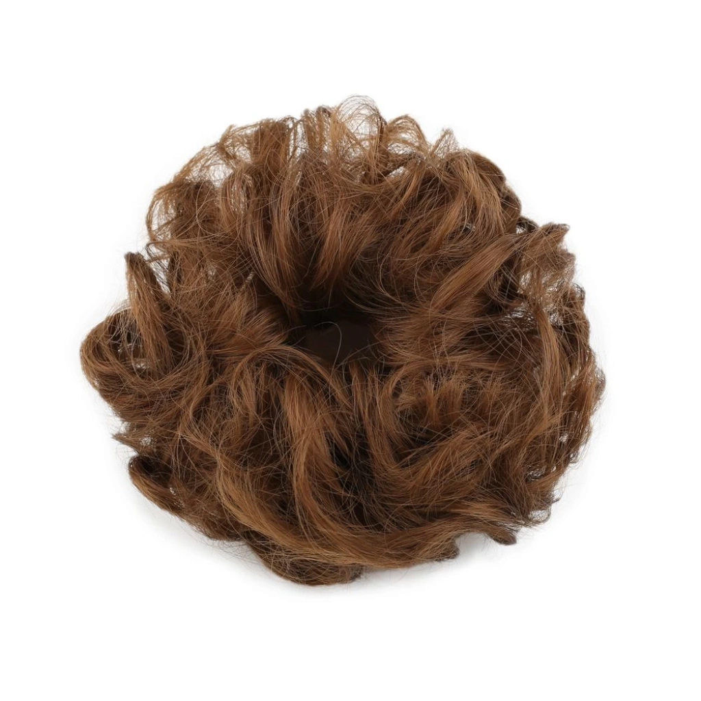 Saçlı Lastikli Topuz Toka - Açık Kahve