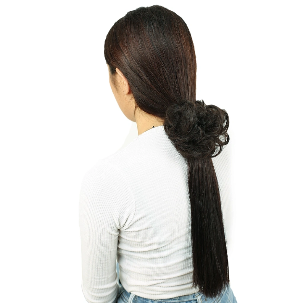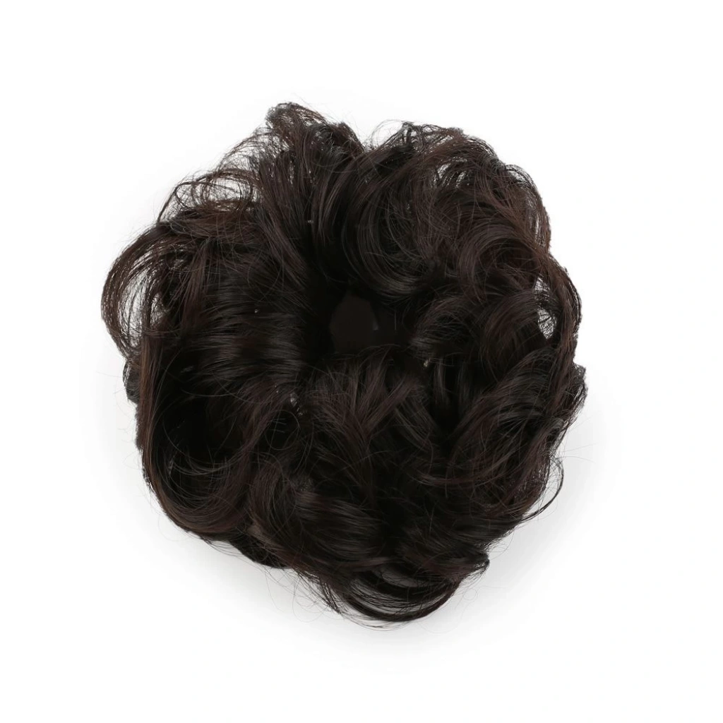 Saçlı Lastikli Topuz Toka - Koyu Kahve