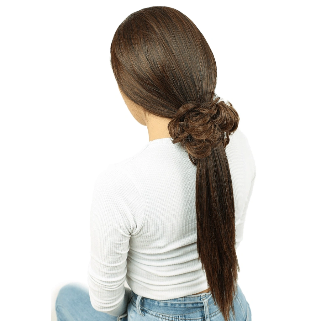 Saçlı Lastikli Topuz Toka - Koyu Kahve