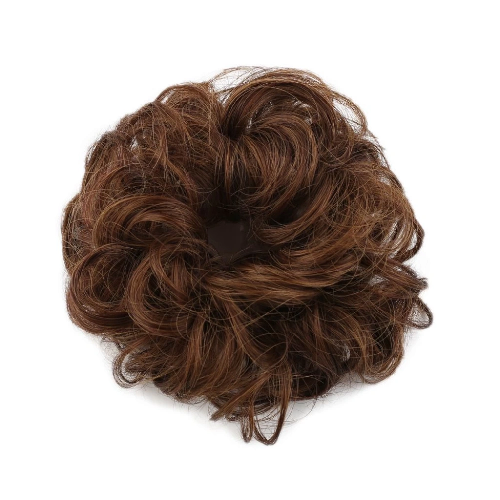Saçlı Lastikli Topuz Toka - Açık Kahve