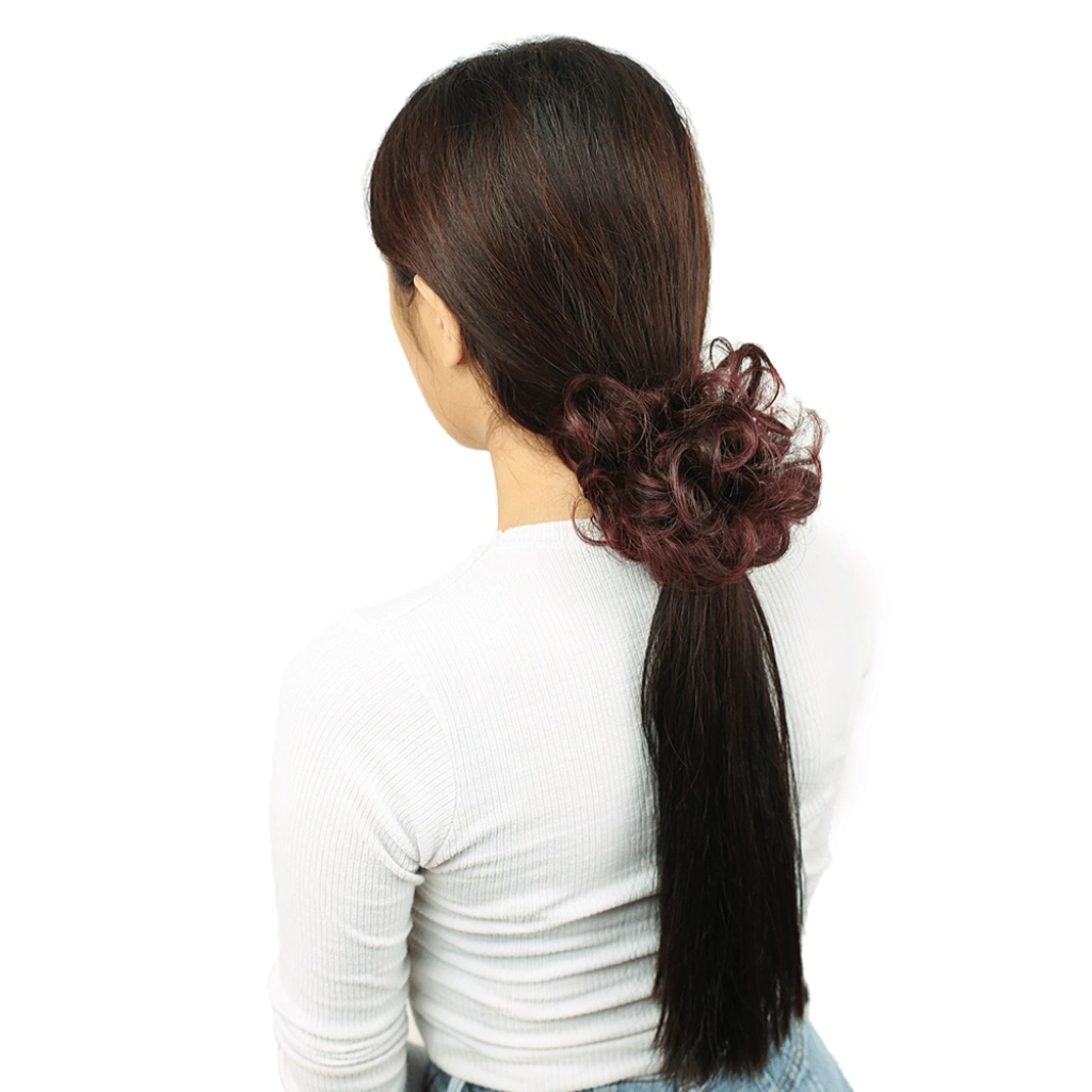 Saçlı Lastikli Topuz Toka - Koyu Kızıl