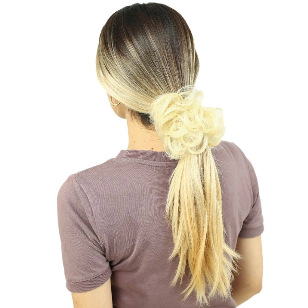 Saçlı Lastikli Topuz Toka - Bebek Kumralı