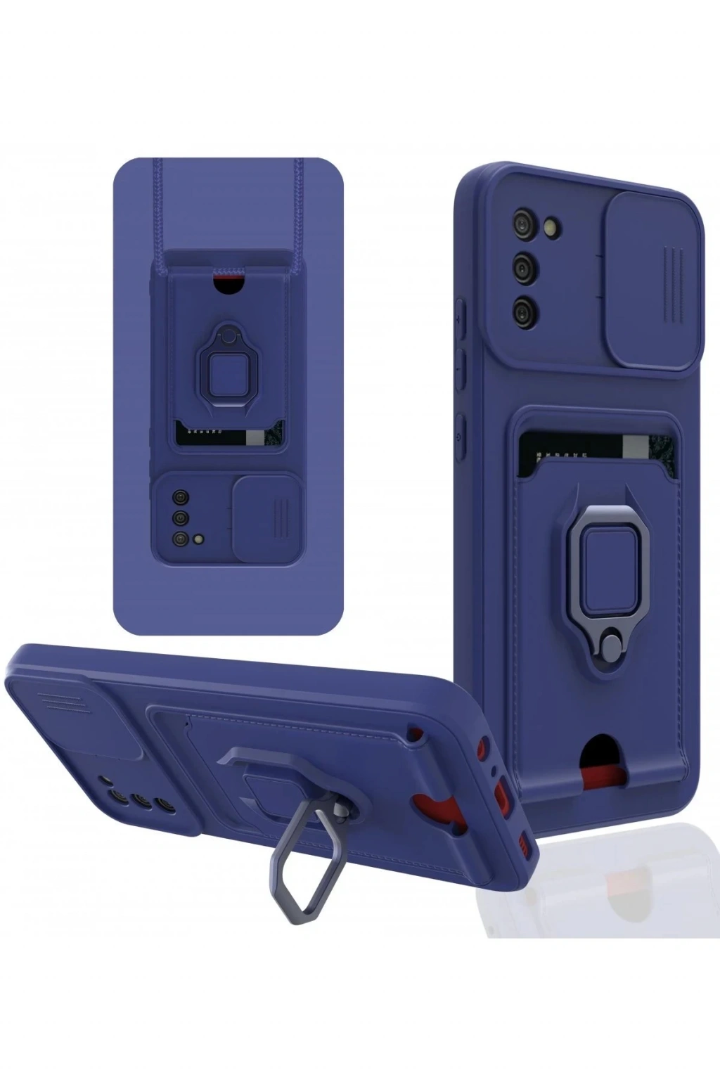 Samsung Galaxy A03S Kılıf Zuma Kartvizitli Yüzüklü Silikon - Lacivert