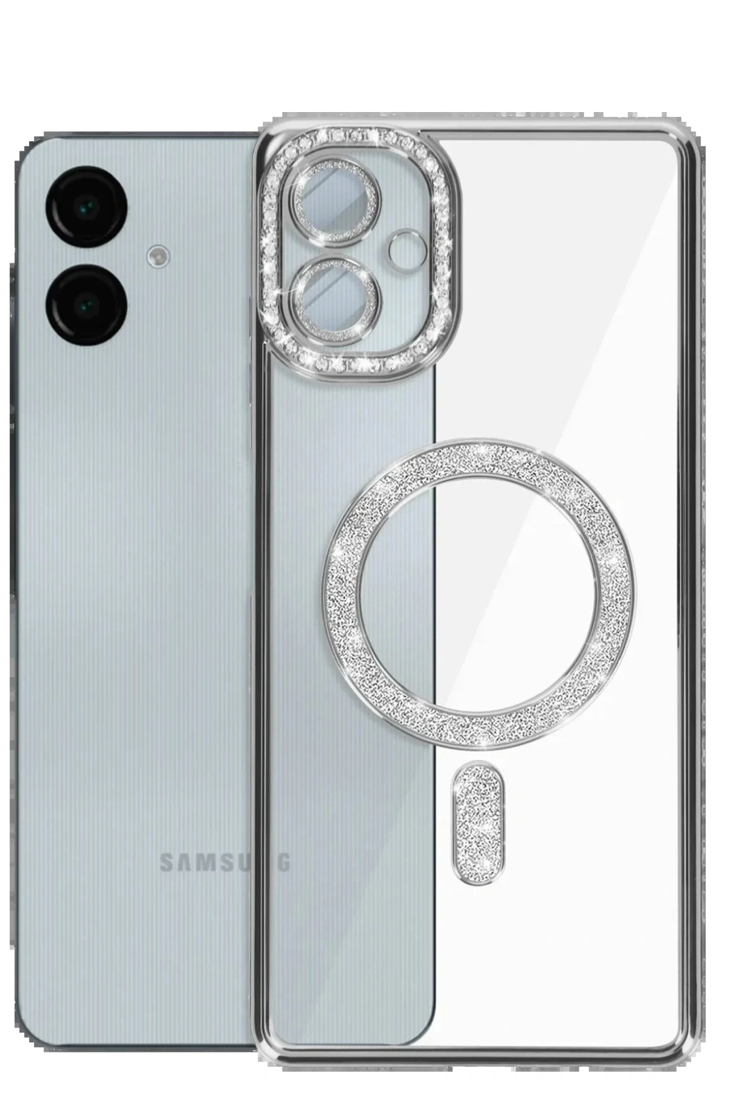 Samsung Galaxy A06 Joke Simli Magneticsafe Kılıf - Gümüş