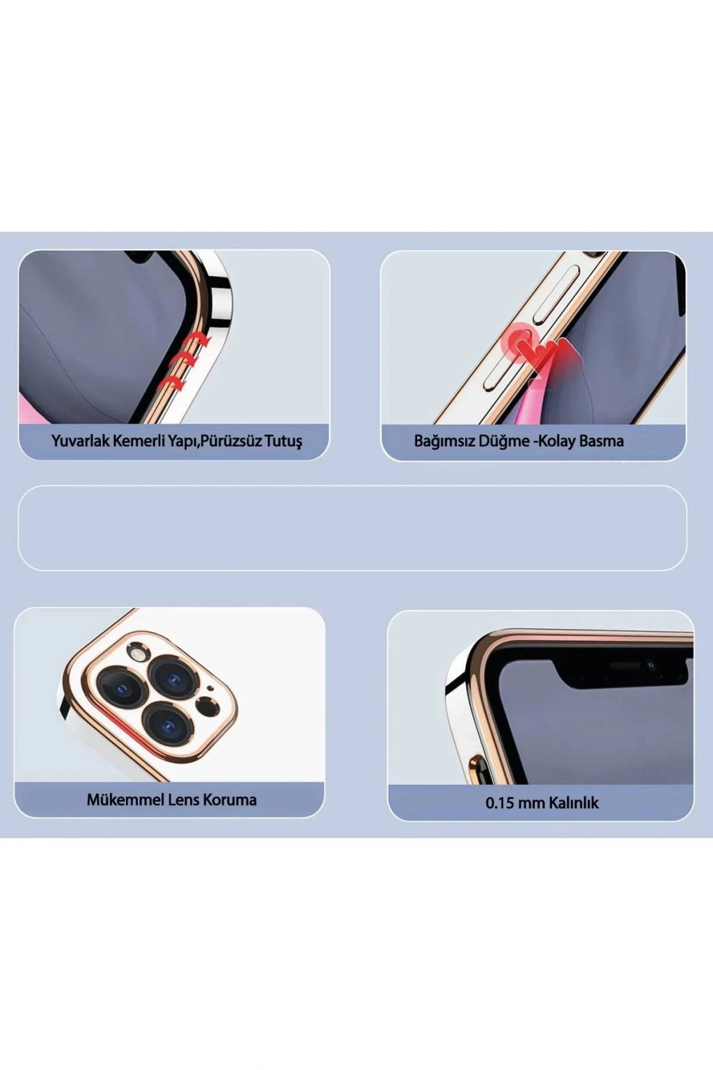 Gold detaylarla zenginleştirilmiş kenar hatları cihazınıza zarif bir dokunuş katar