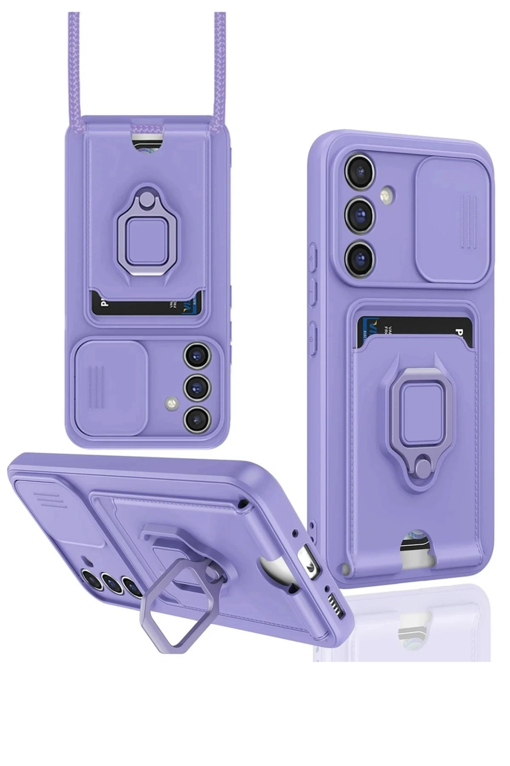 Samsung Galaxy A15 4G Kılıf Zuma Kartvizitli Yüzüklü Silikon - Lila