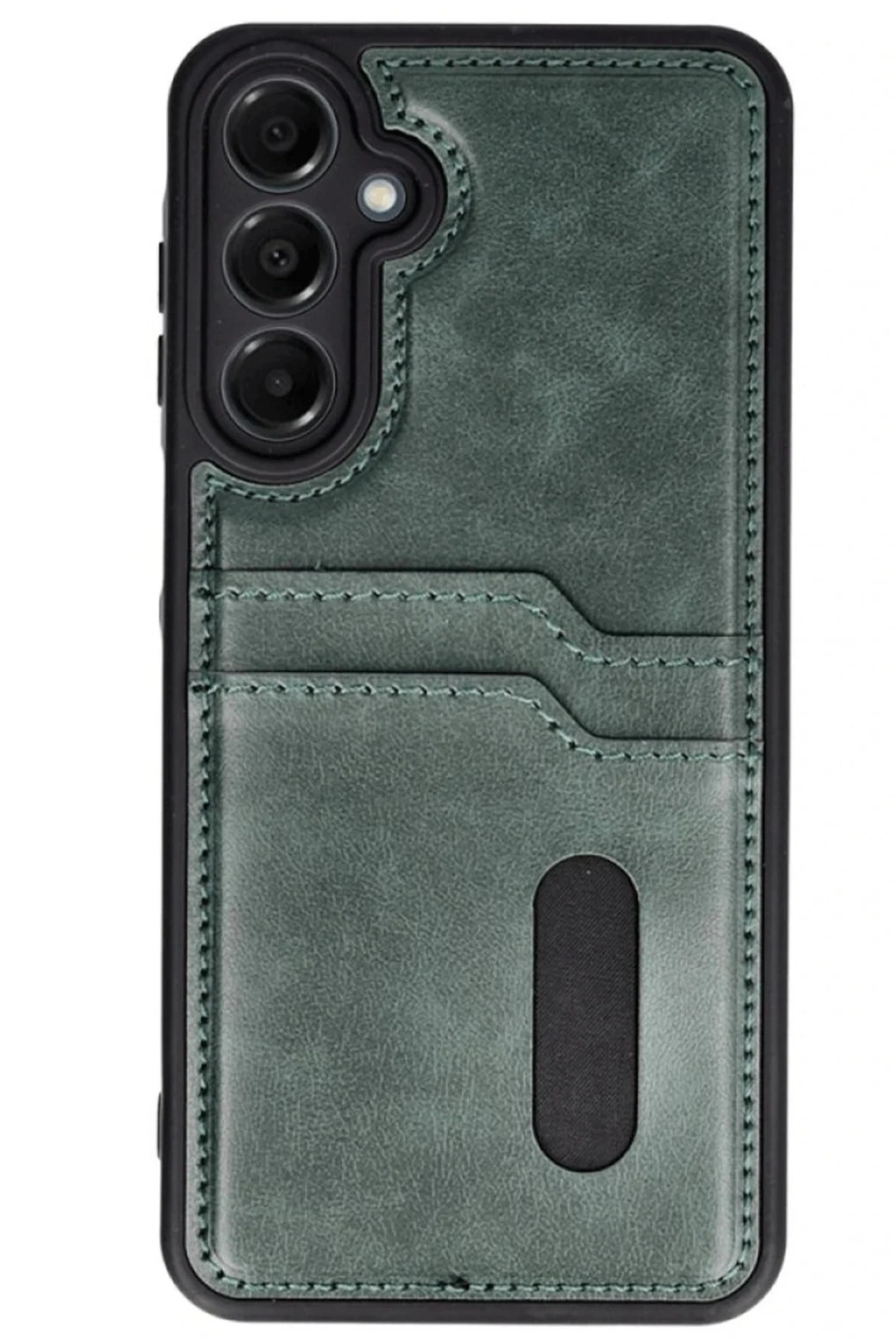 Samsung Galaxy A56 Kılıf Sara Kartvizitli Deri Kılıf - Koyu Yeşil
