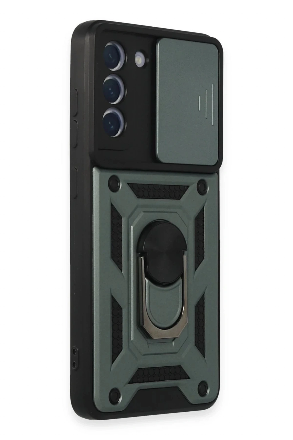 Samsung Galaxy S21 FE Kılıf Pars Lens Yüzüklü Silikon - Yeşil