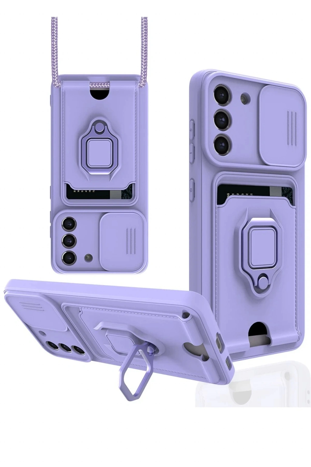 Samsung Galaxy S21 FE Kılıf Zuma Kartvizitli Yüzüklü Silikon - Lila