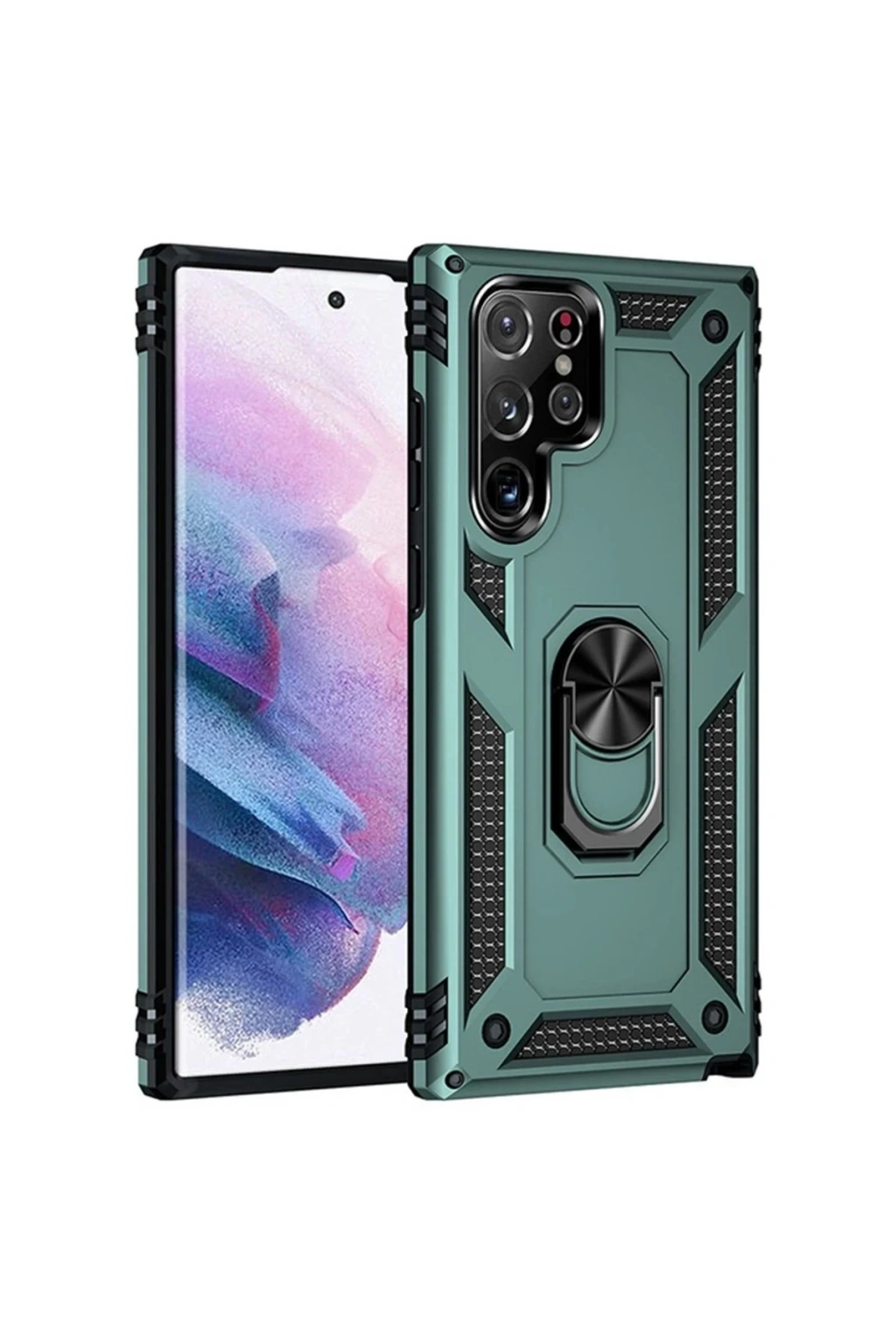 Samsung Galaxy S21 Ultra Kılıf Sofya Yüzüklü Silikon Kapak - Yeşil