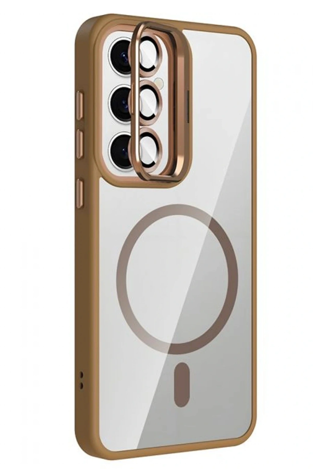 Samsung Galaxy S24 FE Remim Lensli Magsafe Standlı Kapak - Kahverengi