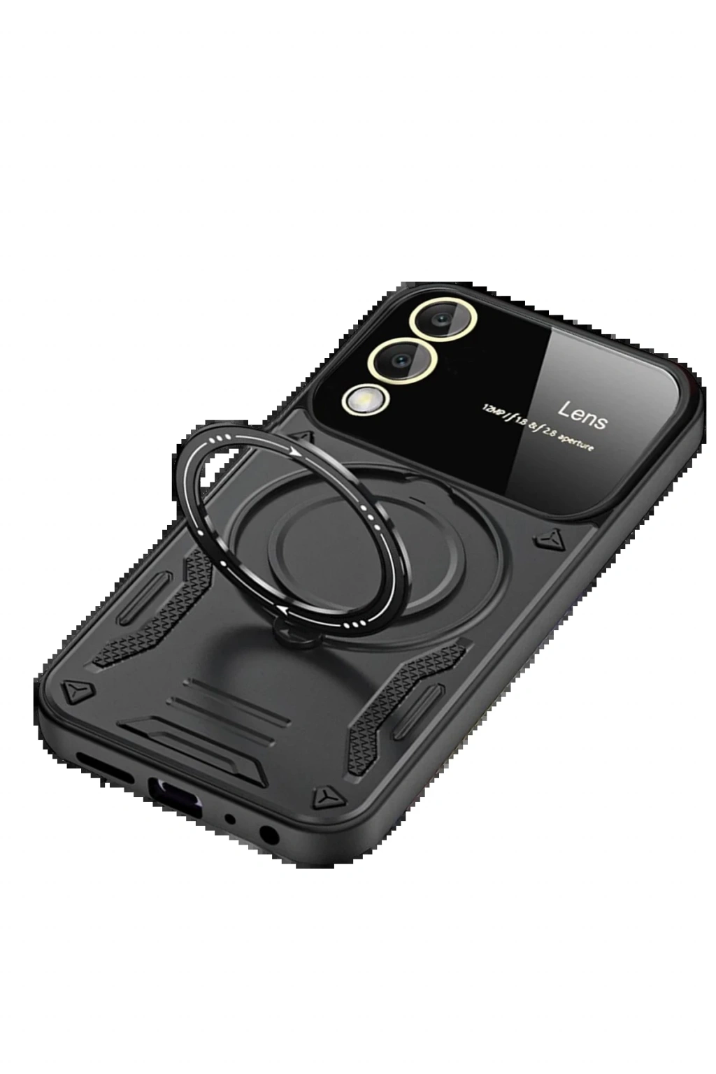 Samsung Galaxy S25 Edge Kılıf Joy Lens Standlı Kapak - Siyah