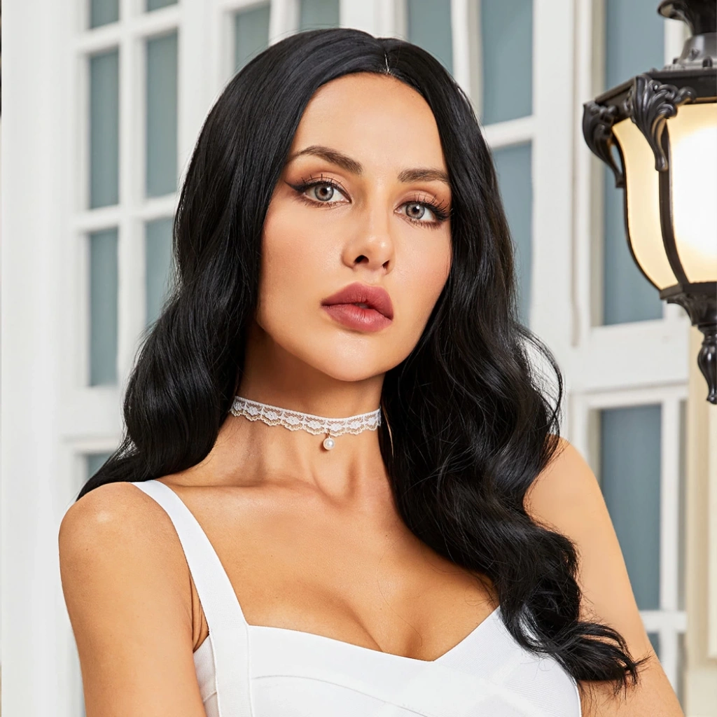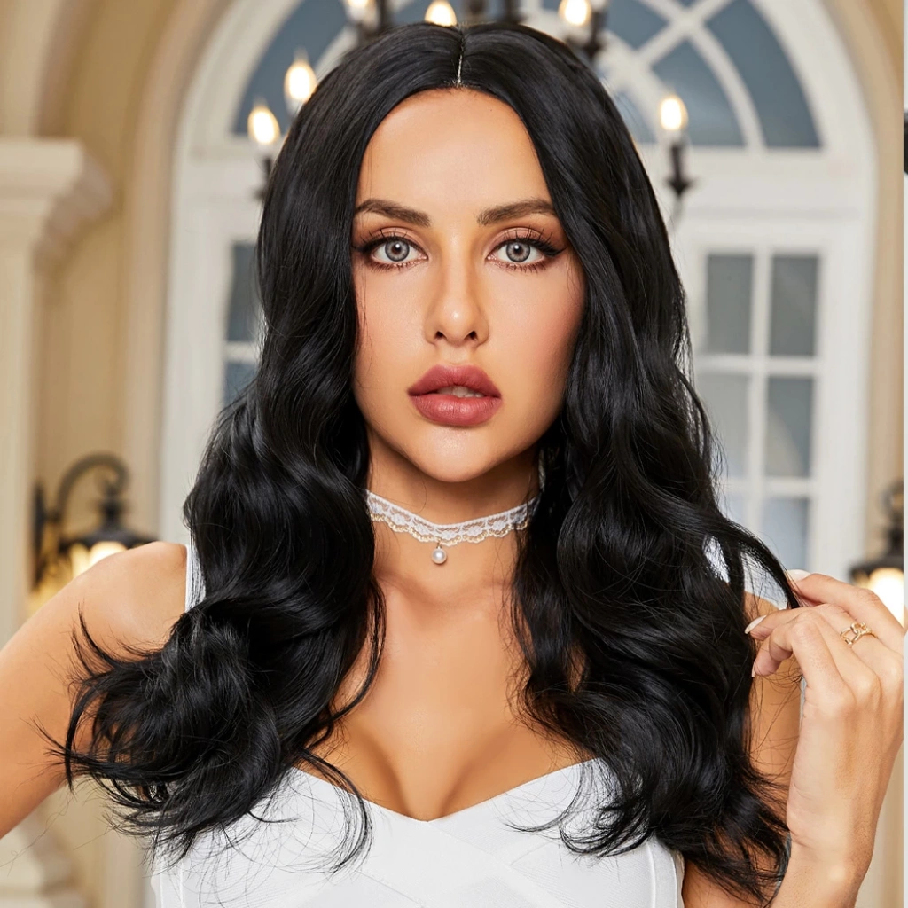 Siyah Geniş Dalgalı Fiber Sentetik Tül Peruk