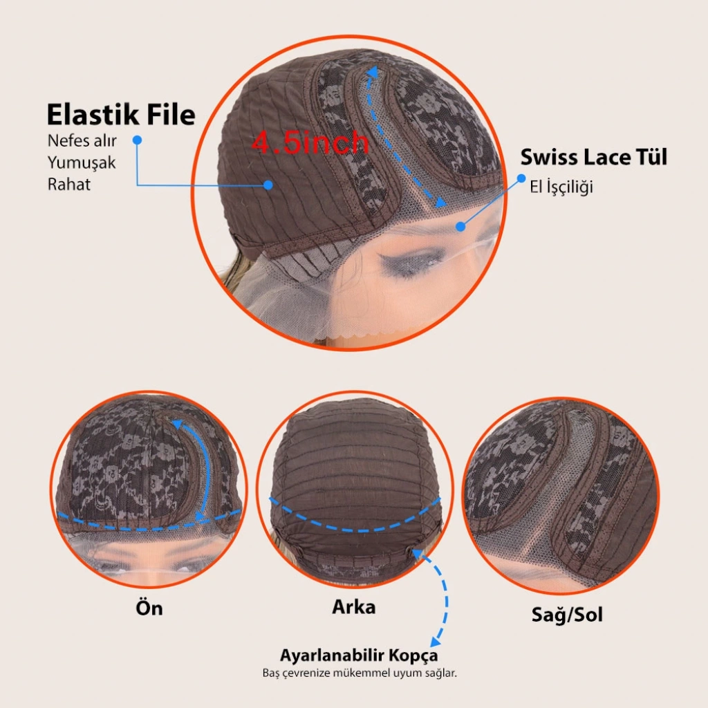 Koyu Kumral Dore Sarı Ombreli Perçemler Bakır Işıltılı Tül Peruk