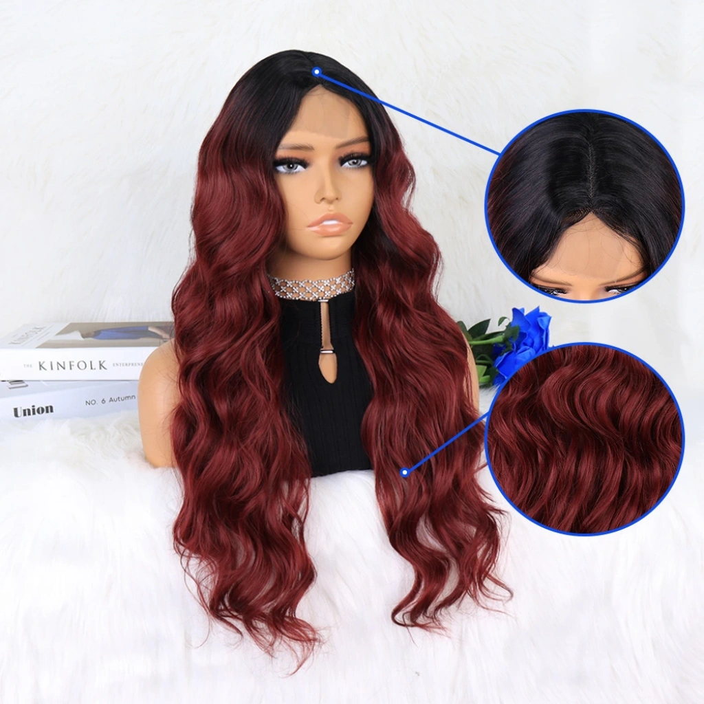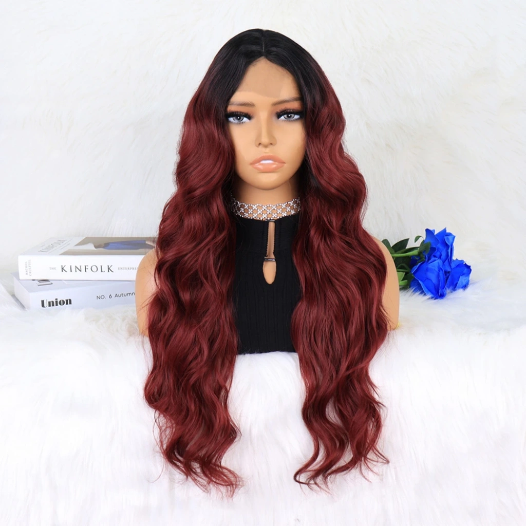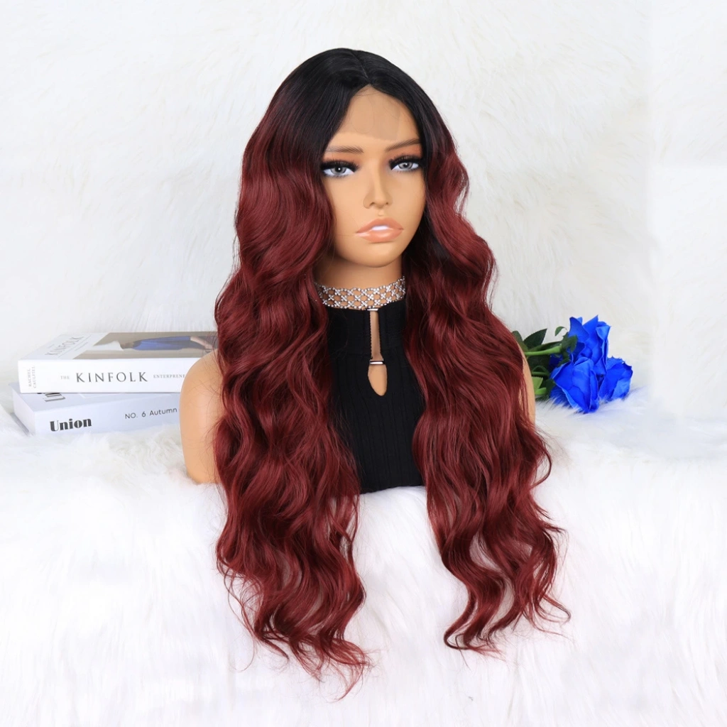 Siyah Koyu Kızıl Ombreli Dalgalı Tül Peruk