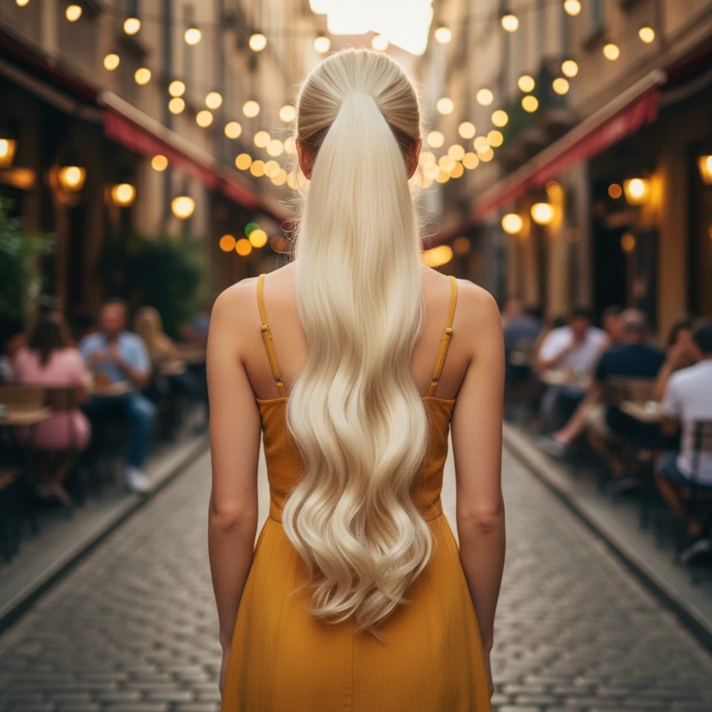 Lastik Tokalı At Kuyruğu Su Dalgalı - Kumral / Platin Ombre