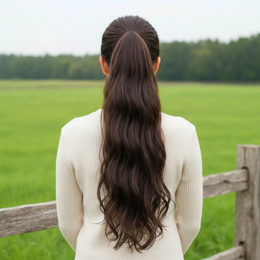 Lastik Tokalı At Kuyruğu Su Dalgalı - Kumral / Platin Ombre