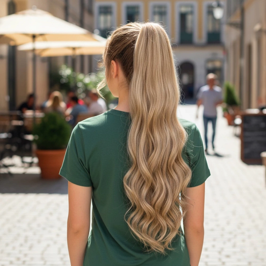 Lastik Tokalı At Kuyruğu Su Dalgalı - Kumral / Platin Ombre