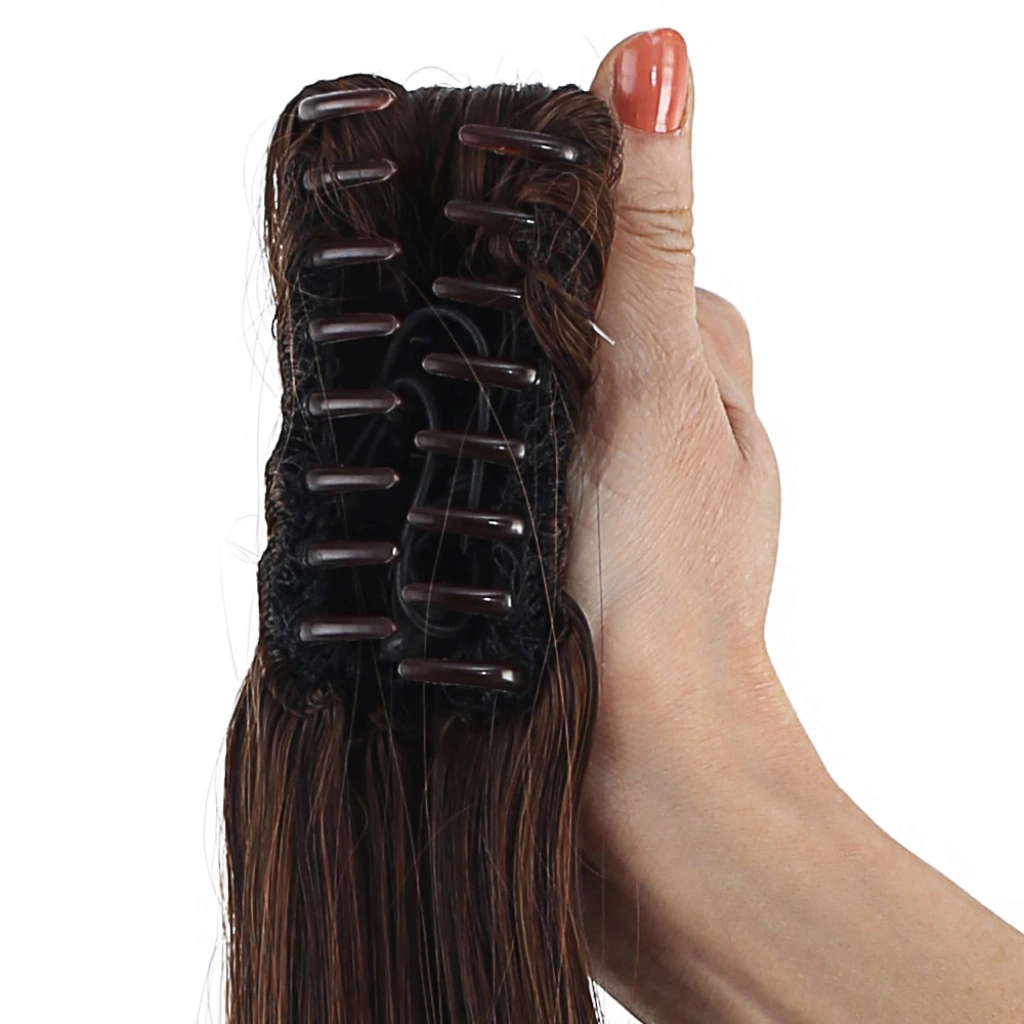 Üçlü Örgülü Tokalı Bağlamalı At Kuyruğu - Çikolata Kahve