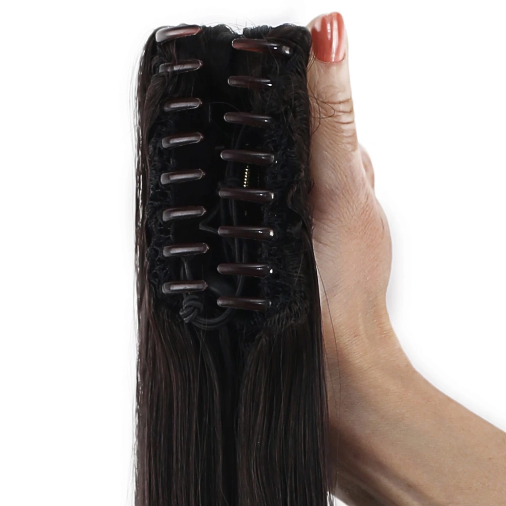 Üçlü Örgülü Tokalı Bağlamalı At Kuyruğu - Çikolata Kahve