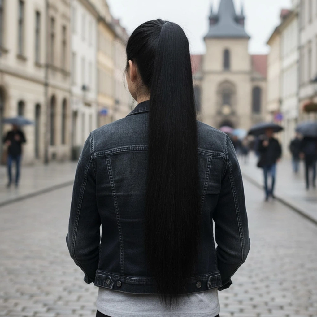 Lastik Tokalı At Kuyruğu Su Dalgalı - Kumral / Platin Ombre