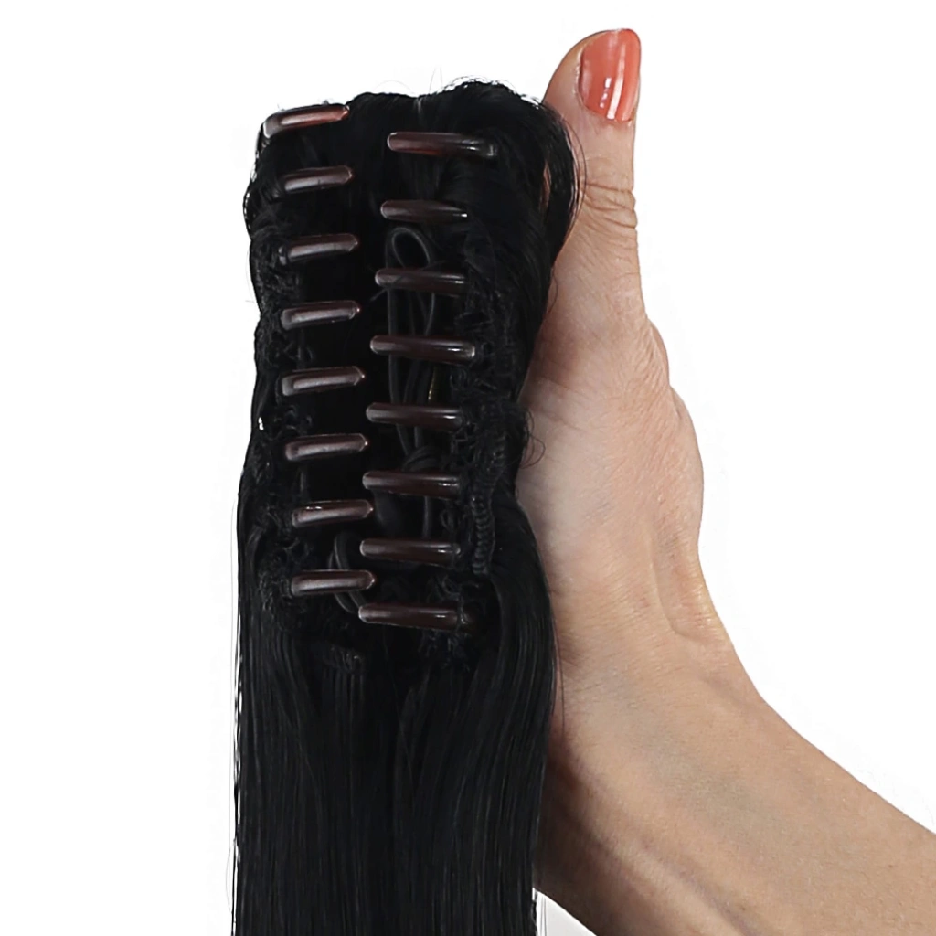 Üçlü Örgülü Tokalı Bağlamalı At Kuyruğu - Çikolata Kahve