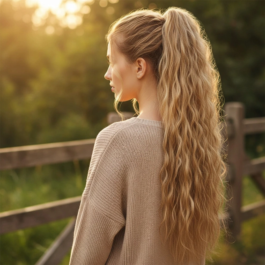 Lastik Tokalı At Kuyruğu Su Dalgalı - Kumral / Platin Ombre