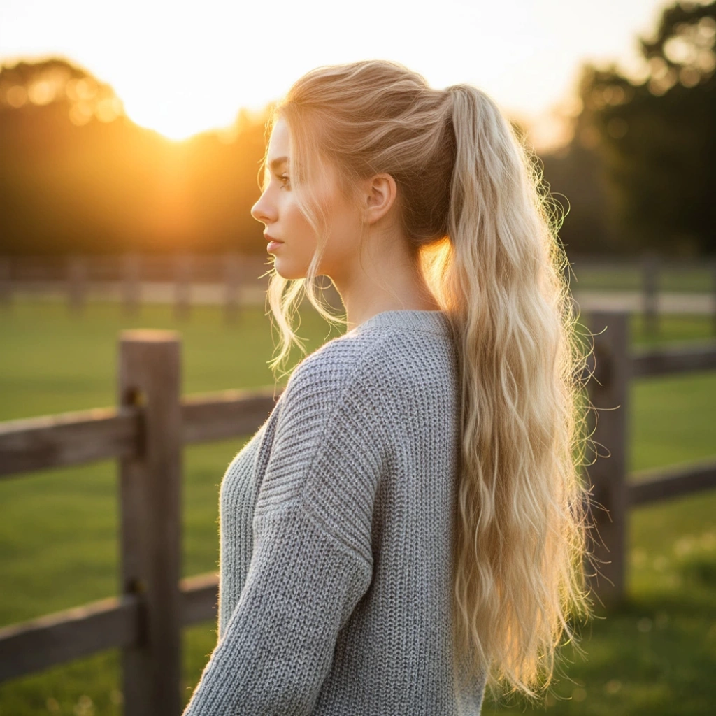 Lastik Tokalı At Kuyruğu Su Dalgalı - Kumral / Platin Ombre
