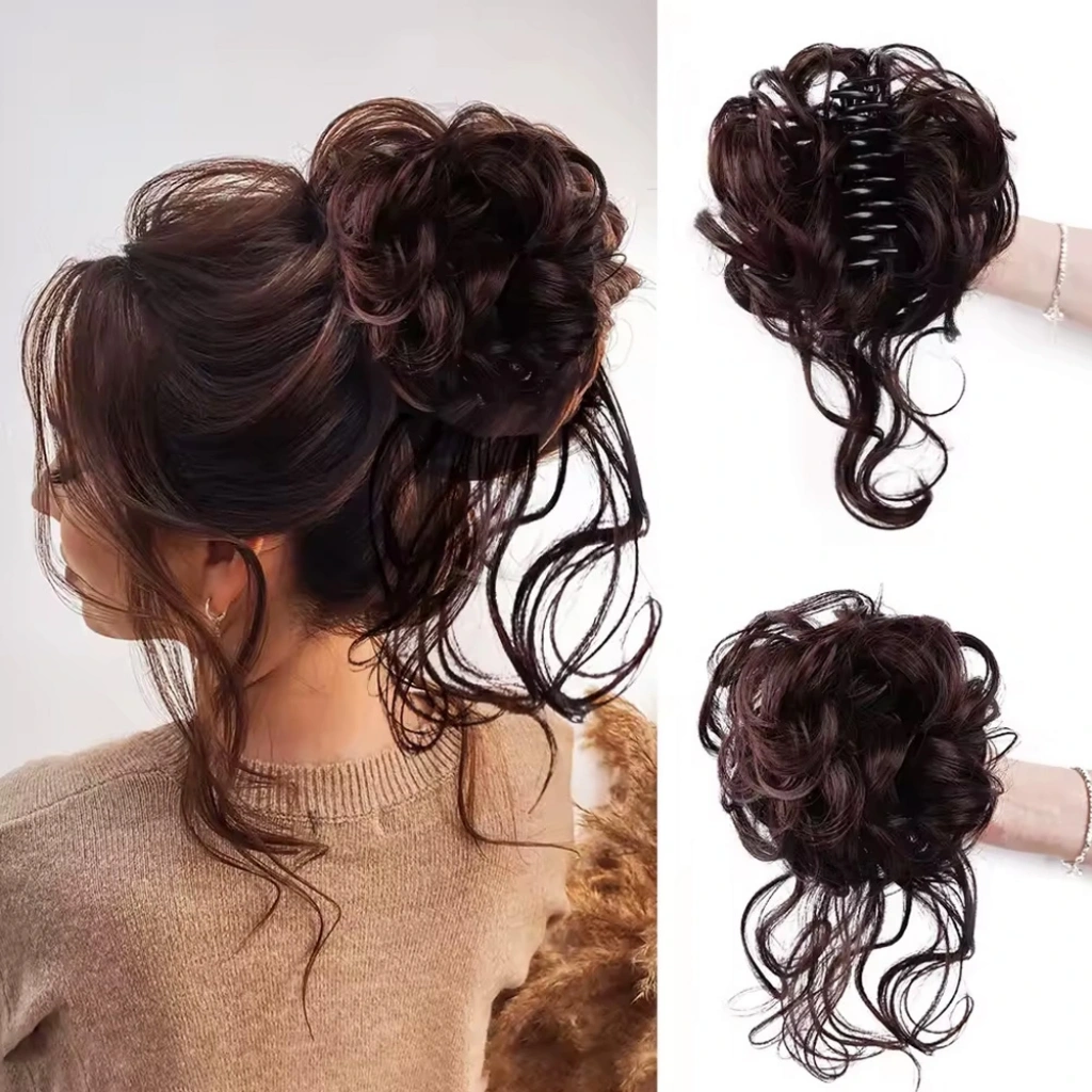 Tokalı Kuyruklu Dağınık Topuz - Çikolata Kahve