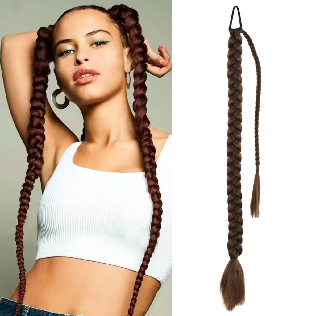 Üçlü Örgülü Tokalı Bağlamalı At Kuyruğu - Çikolata Kahve