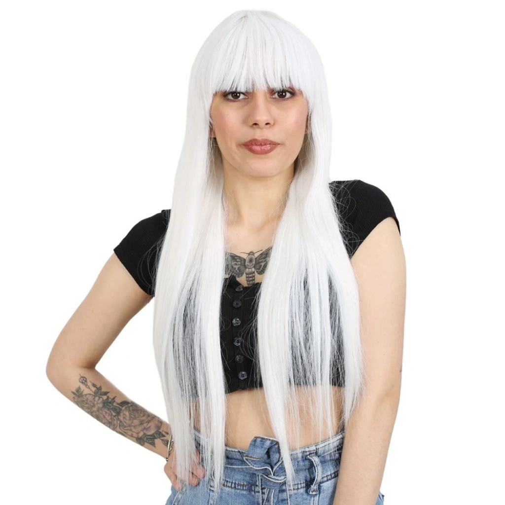 Uzun Kahküllü Fiber Sentetik Peruk - Beyaz