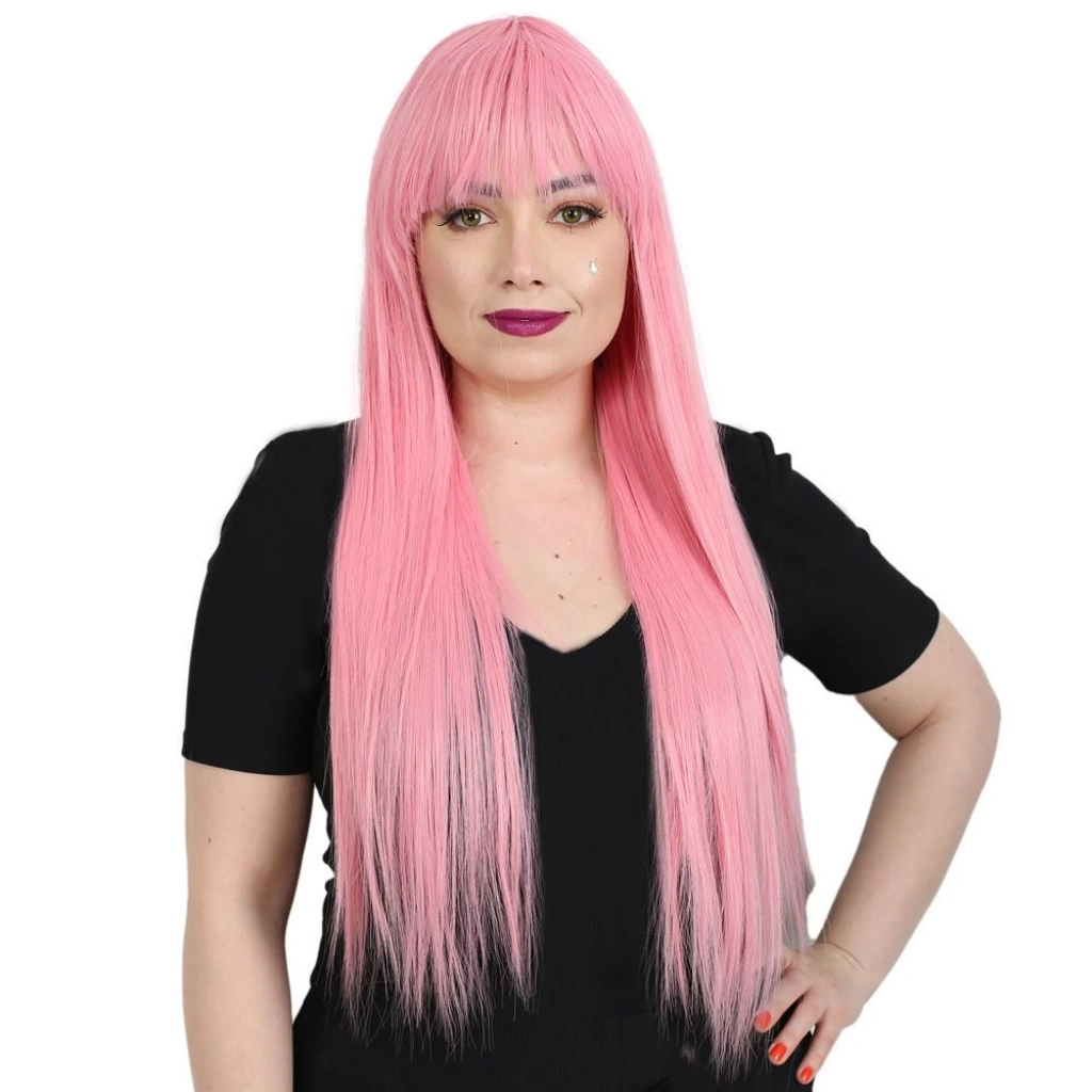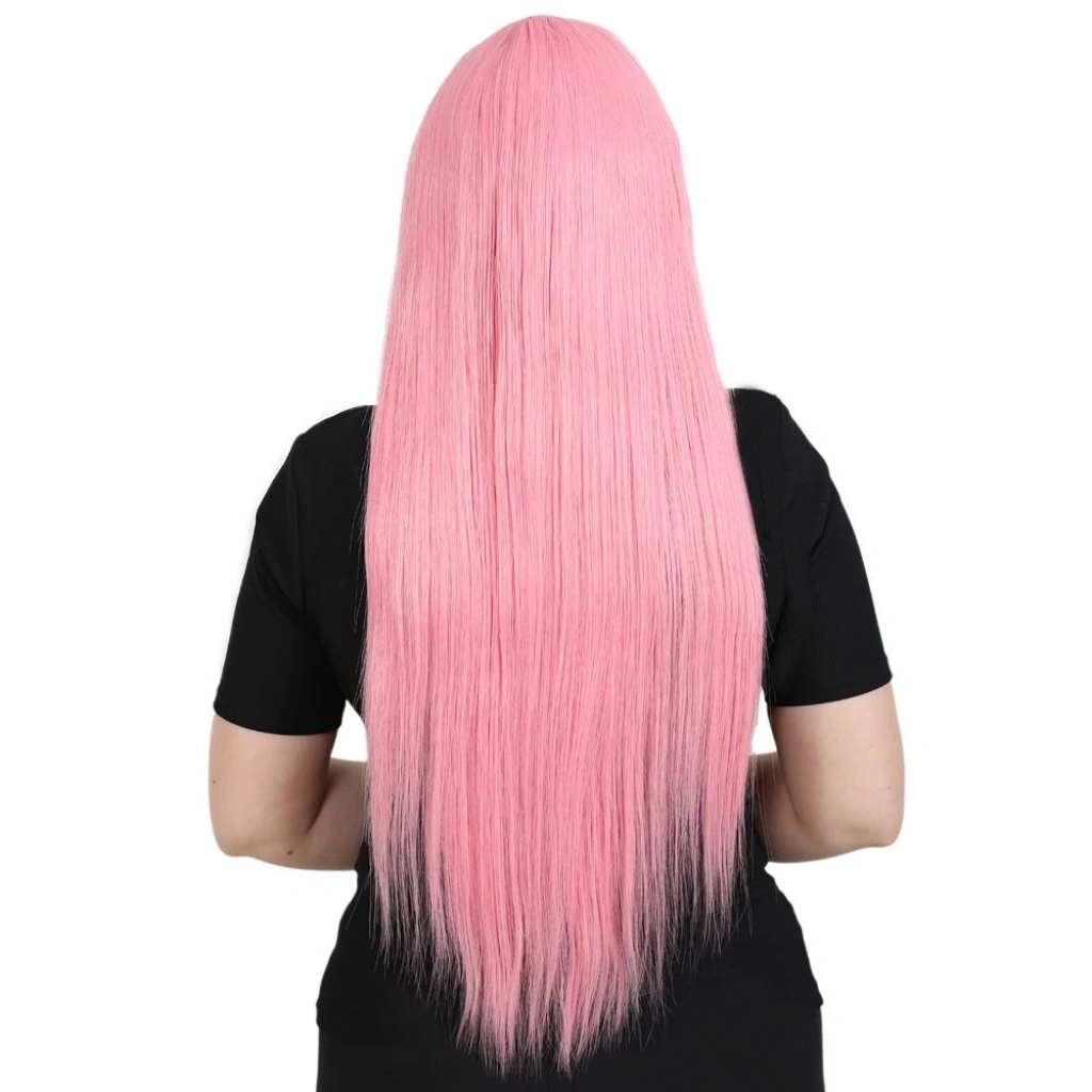 Uzun Kahküllü Fiber Sentetik Peruk - Şeker Pembesi