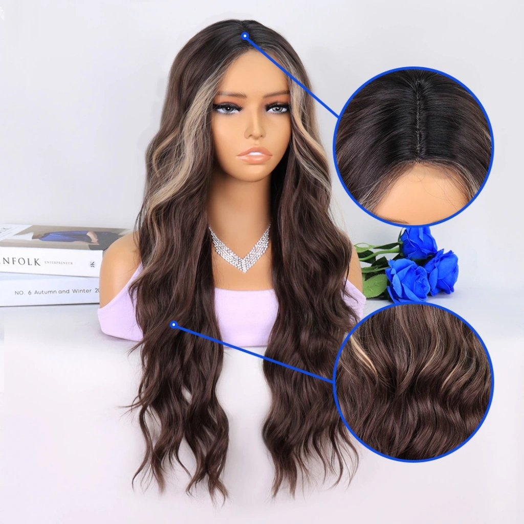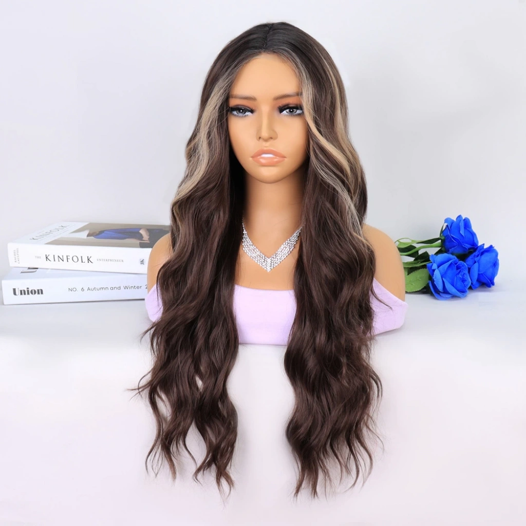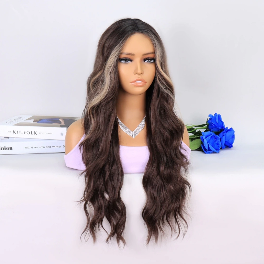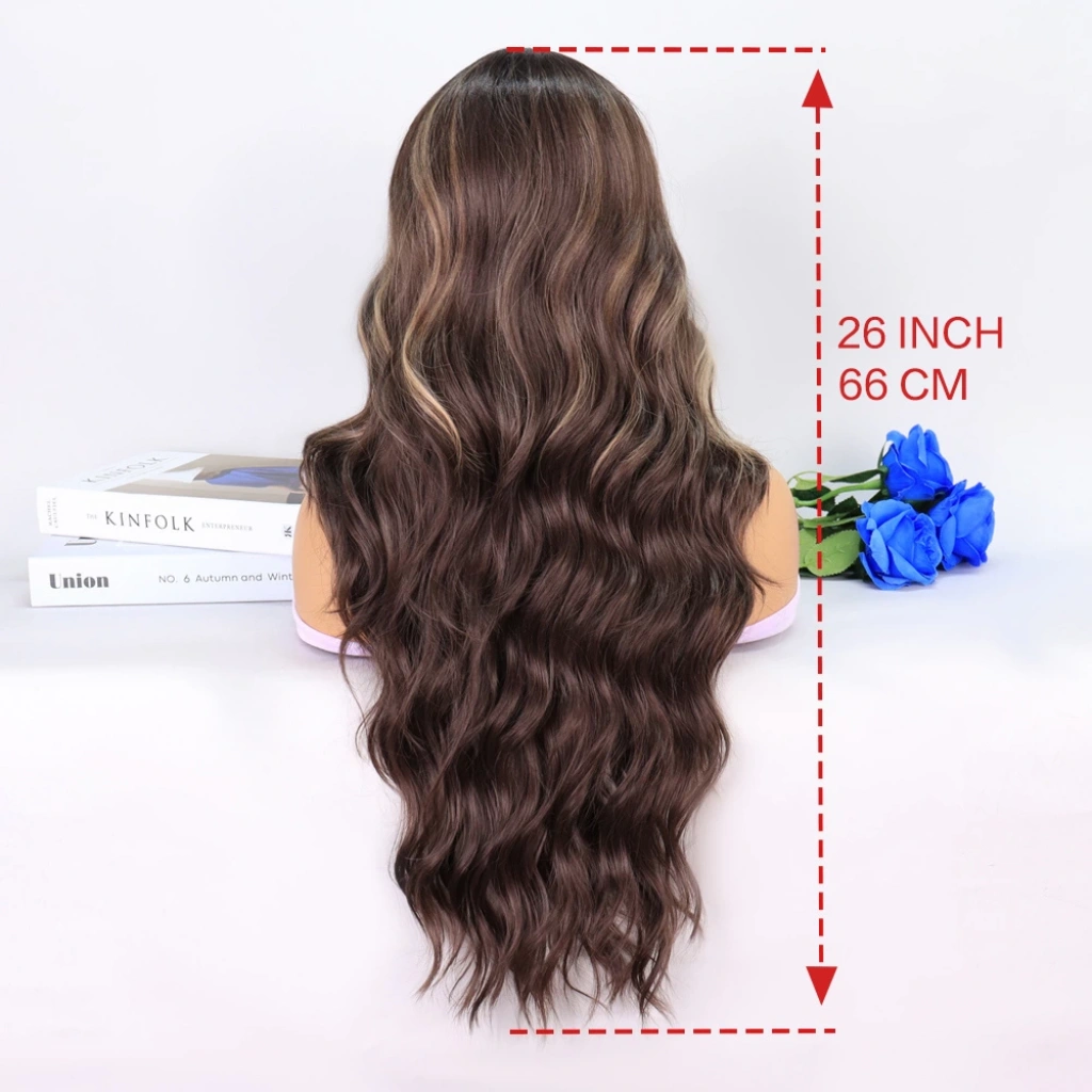 Kahverengi Karamel Işıltılı Su Dalgalı Fiber Sentetik Tül Peruk