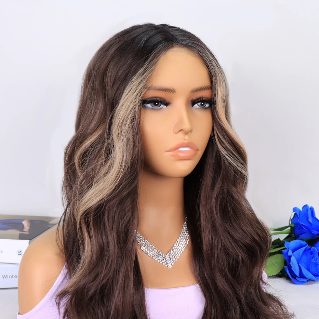 Açık Kumral Platin Ombreli Dalgalı Tül Peruk