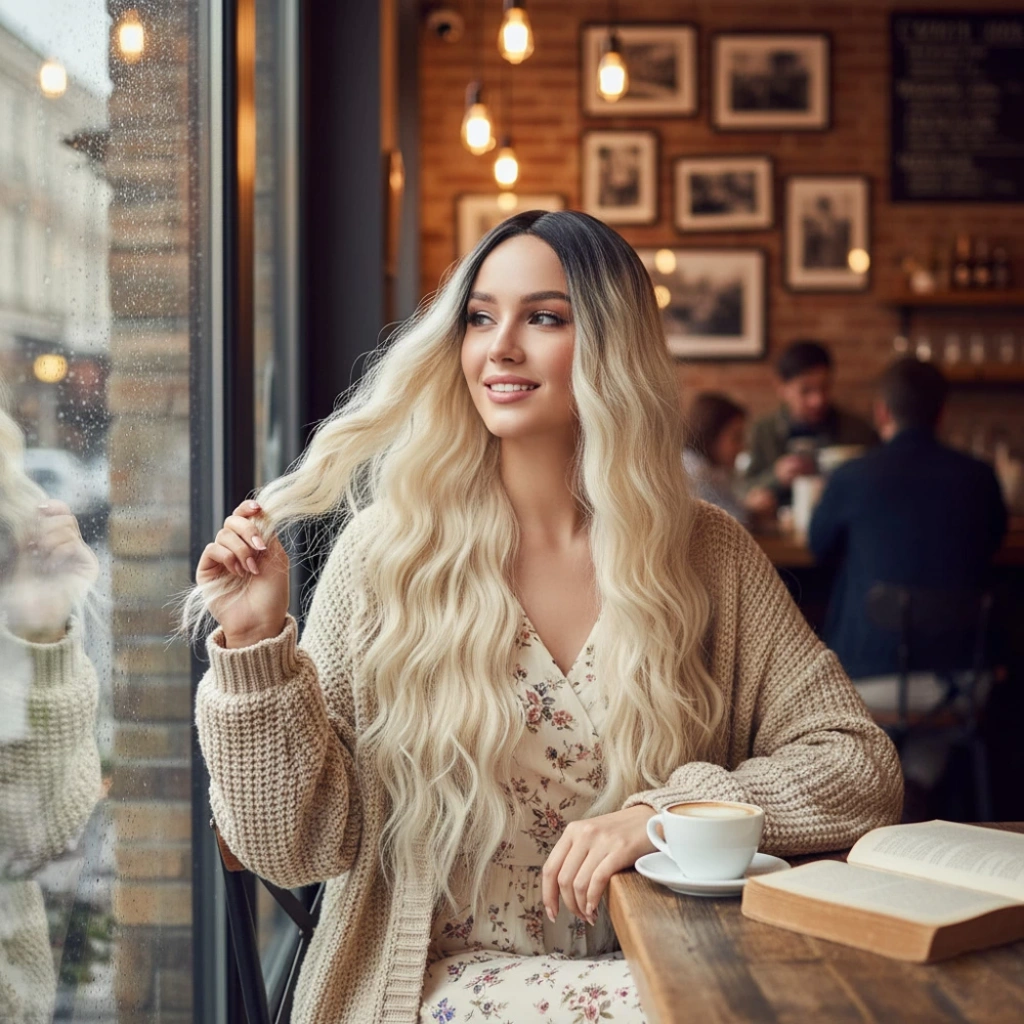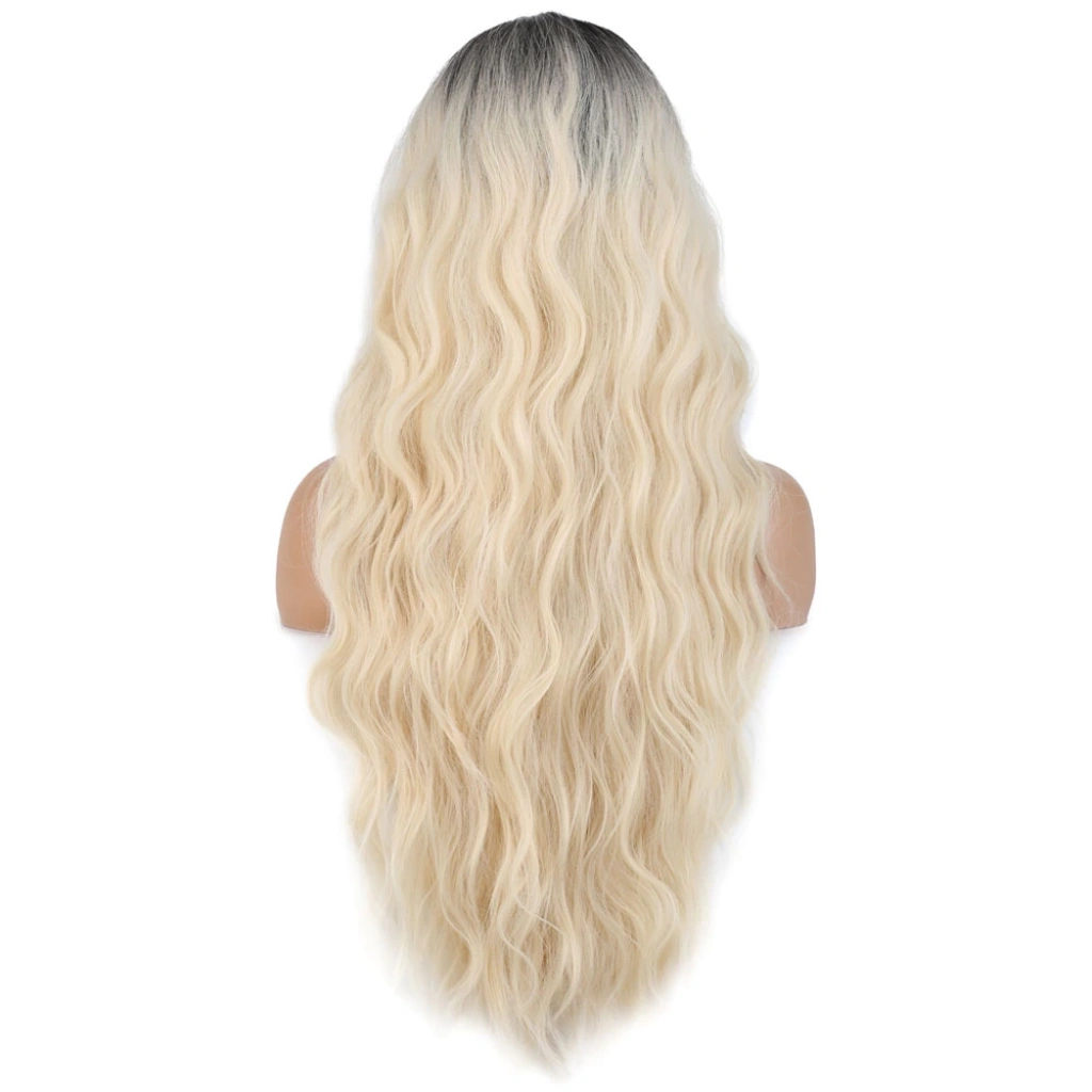 Uzun Su Dalgası Fiber Sentetik Peruk - Kahve / Platin Ombre