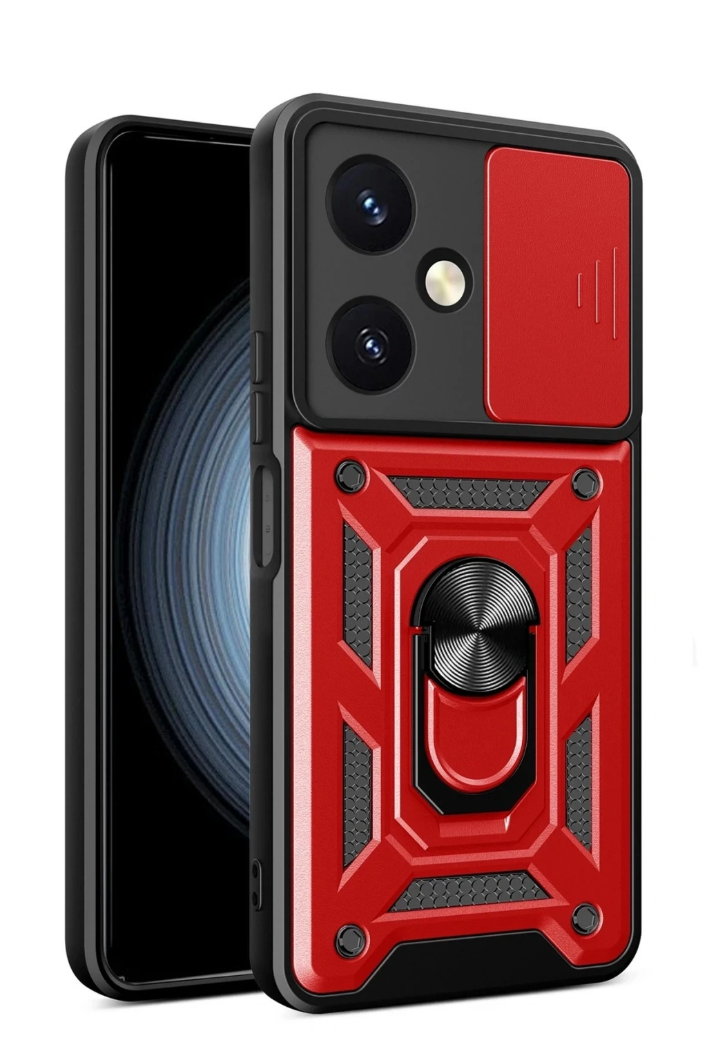 Vivo Y27 Kılıf Pars Lens Yüzüklü Silikon - Kırmızı