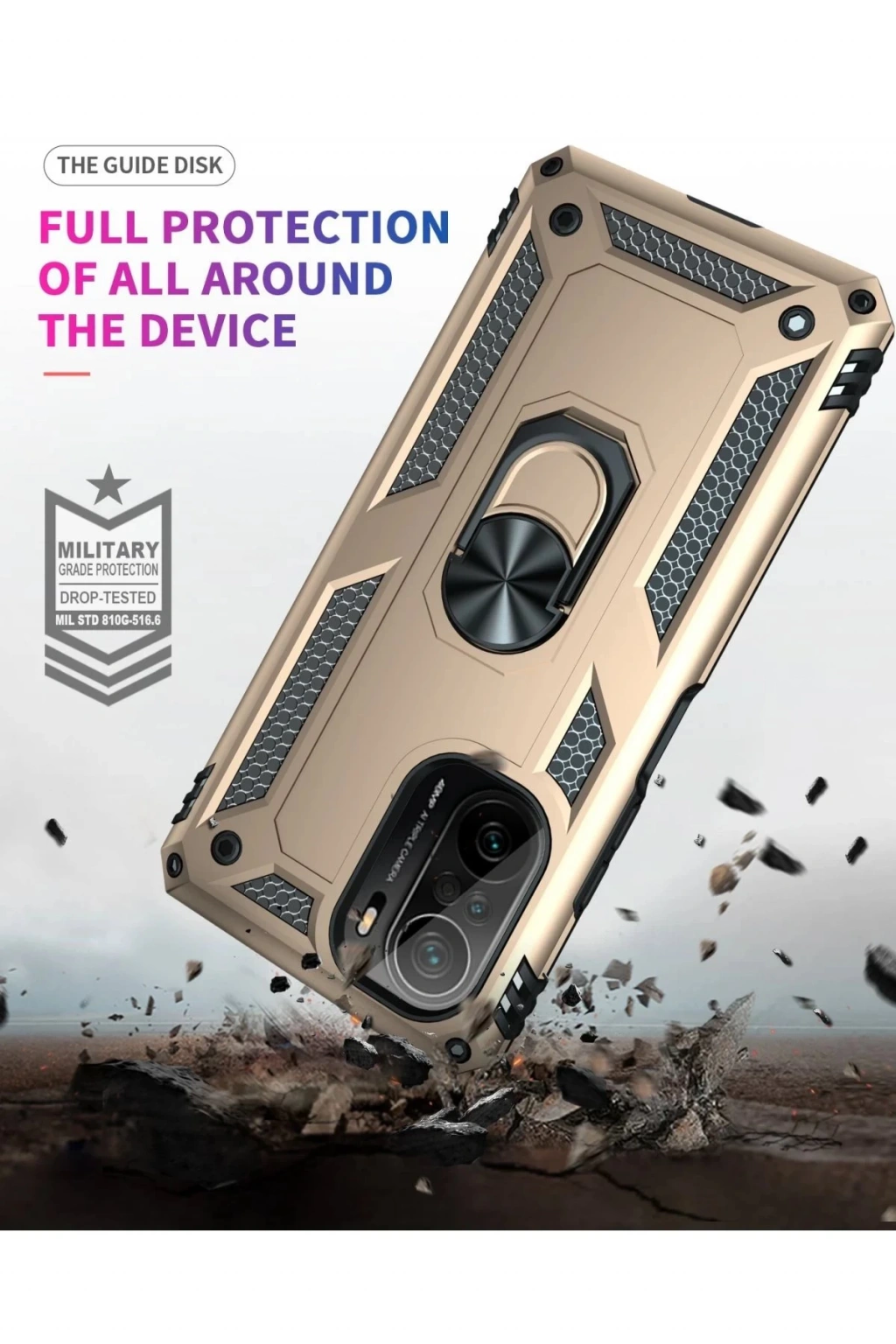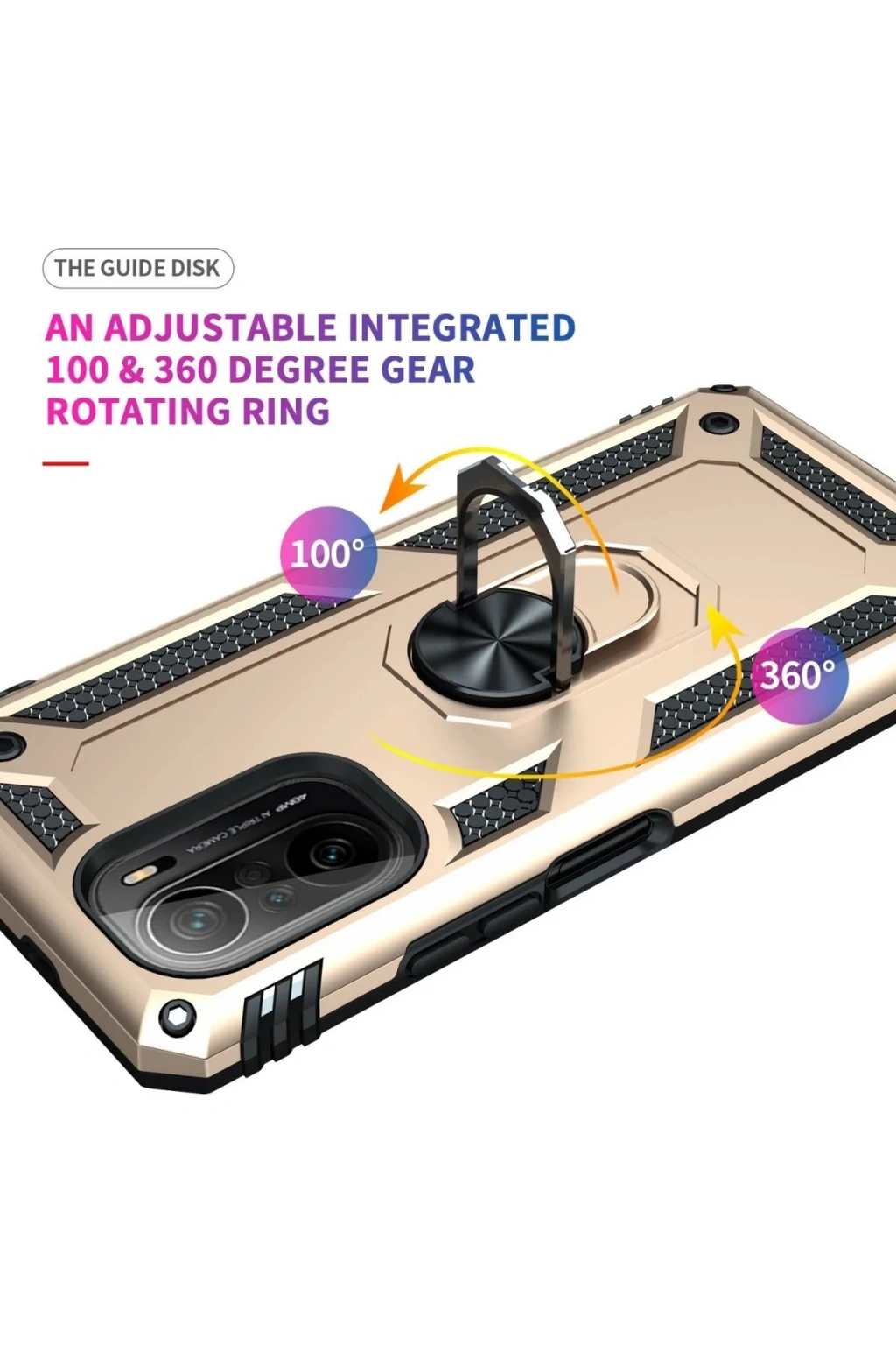 Xiaomi Poco F3 Kılıf Sofya Yüzüklü Silikon Kapak - Gold