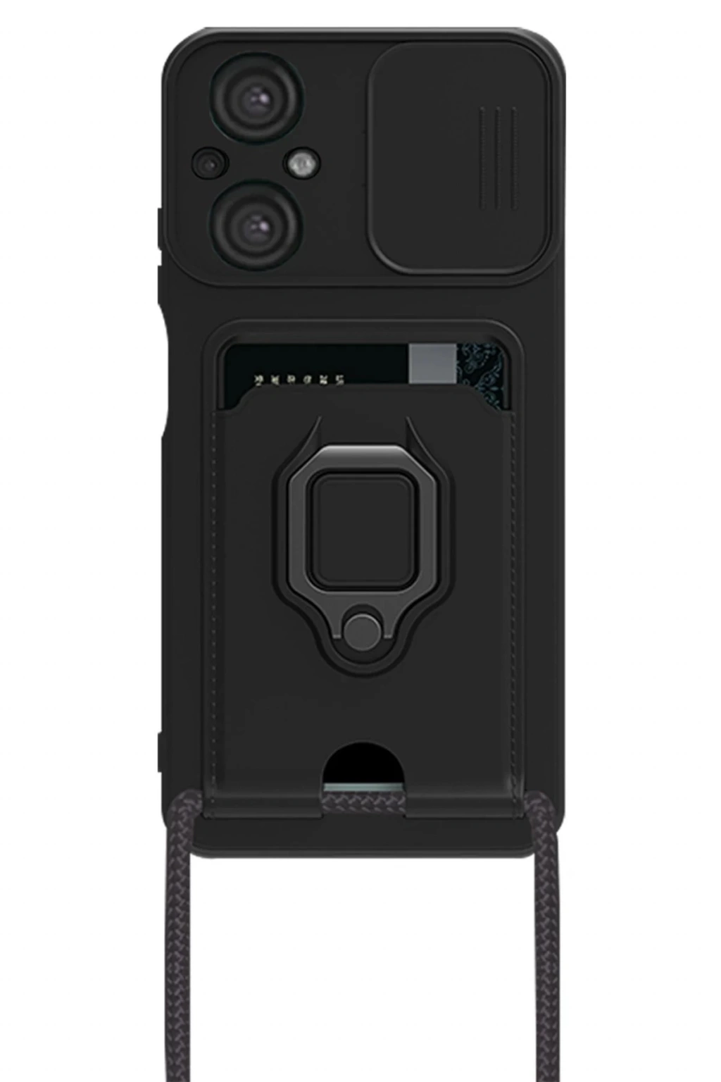 Xiaomi Poco M5 Kılıf Zuma Kartvizitli Yüzüklü Silikon - Siyah