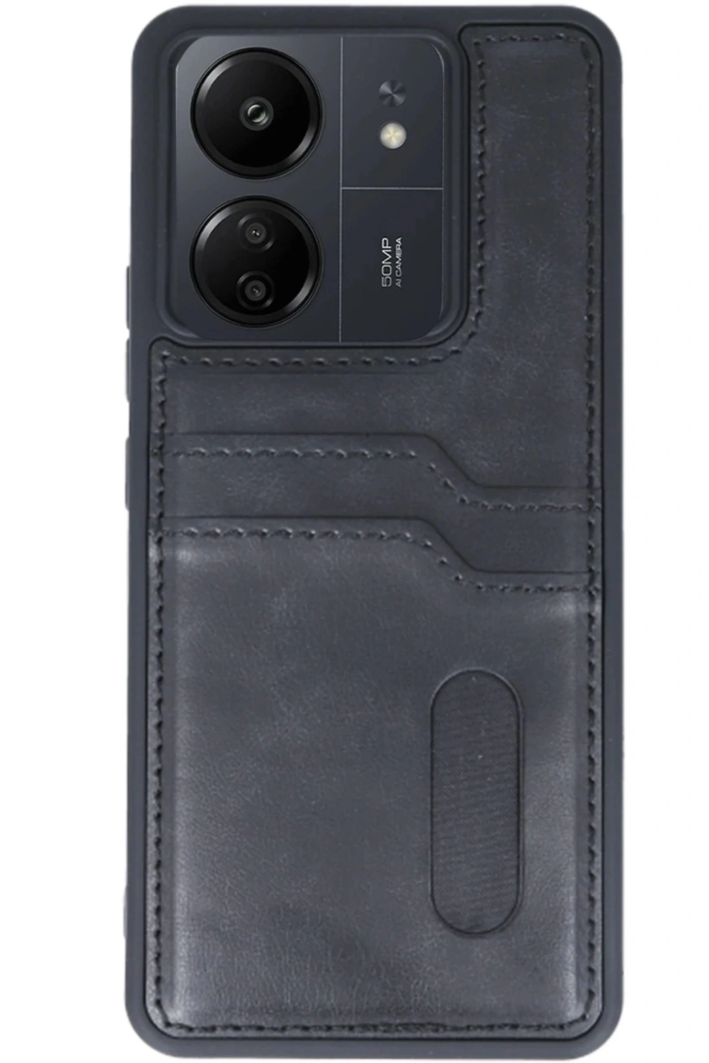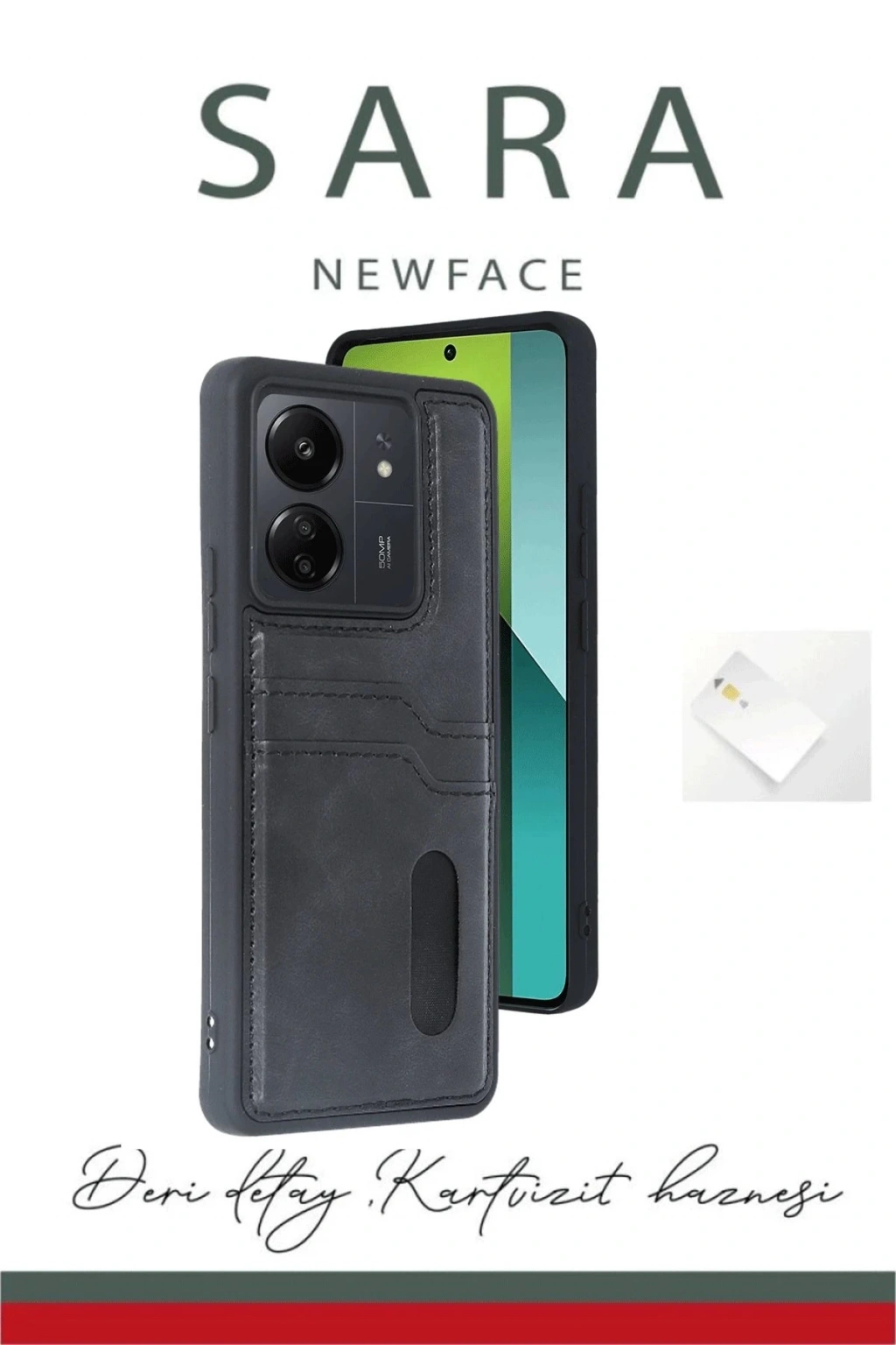 Xiaomi Redmi 13C Kılıf Sara Kartvizitli Deri Kılıf - Siyah