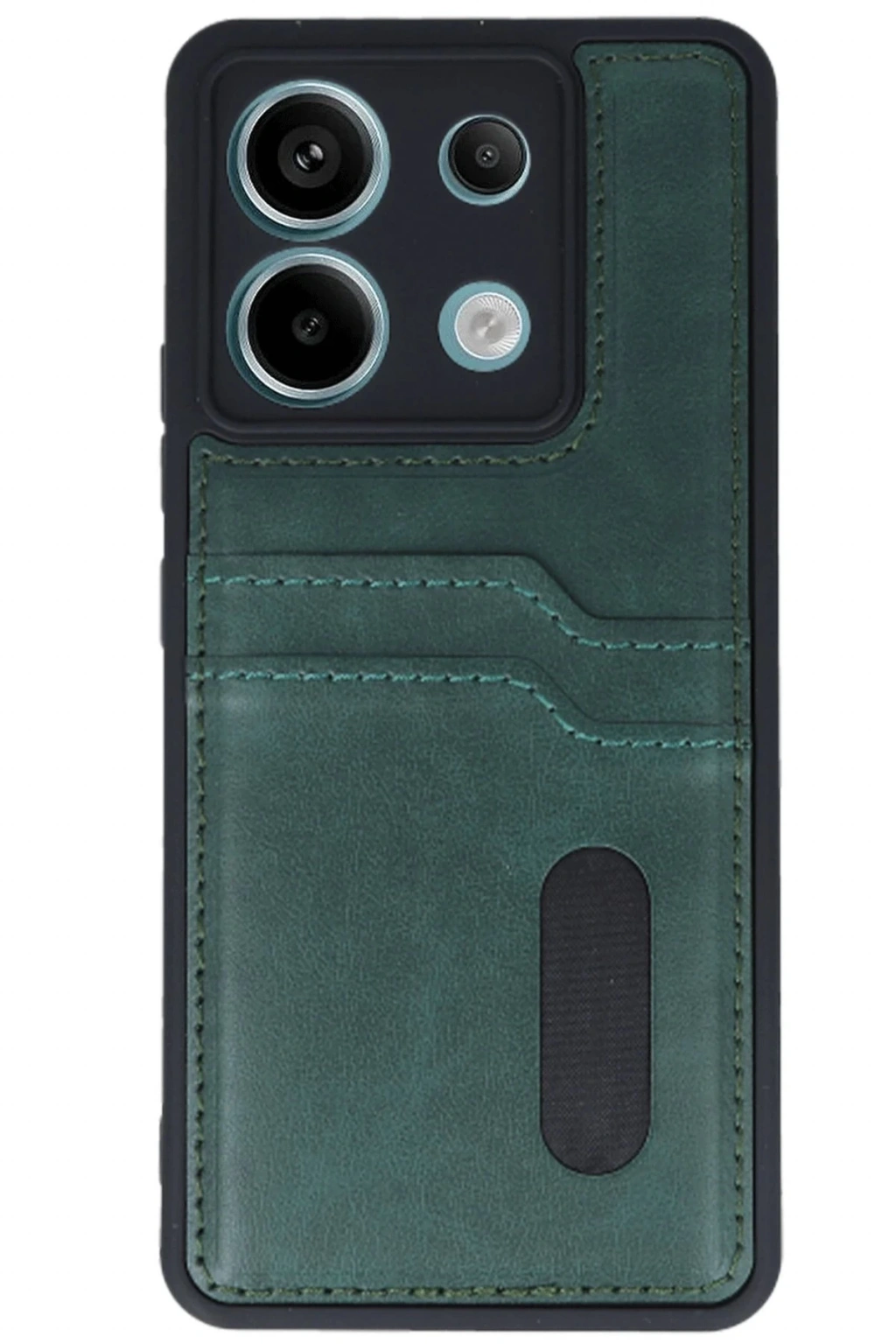 Xiaomi Redmi Note 13 Pro 5G Kılıf Sara Kartvizitli Deri Kılıf - Koyu Yeşil