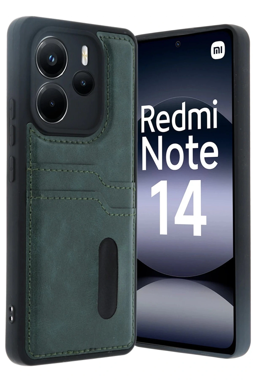 Xiaomi Redmi Note 14 4G Kılıf Sara Kartvizitli Deri Kılıf - Koyu Yeşil