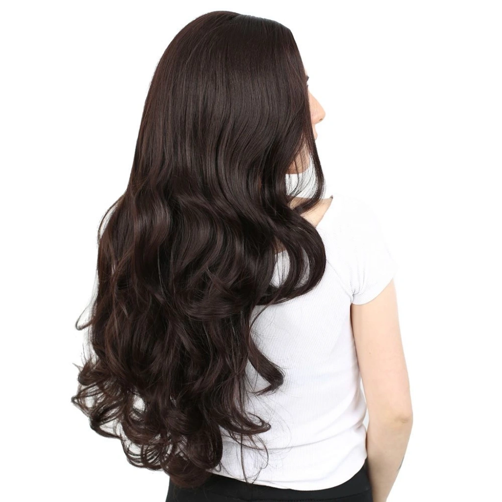 Yoğun Dalgalı Fiber Sentetik Uzun Perçemsiz Peruk-Koyu Kahve
